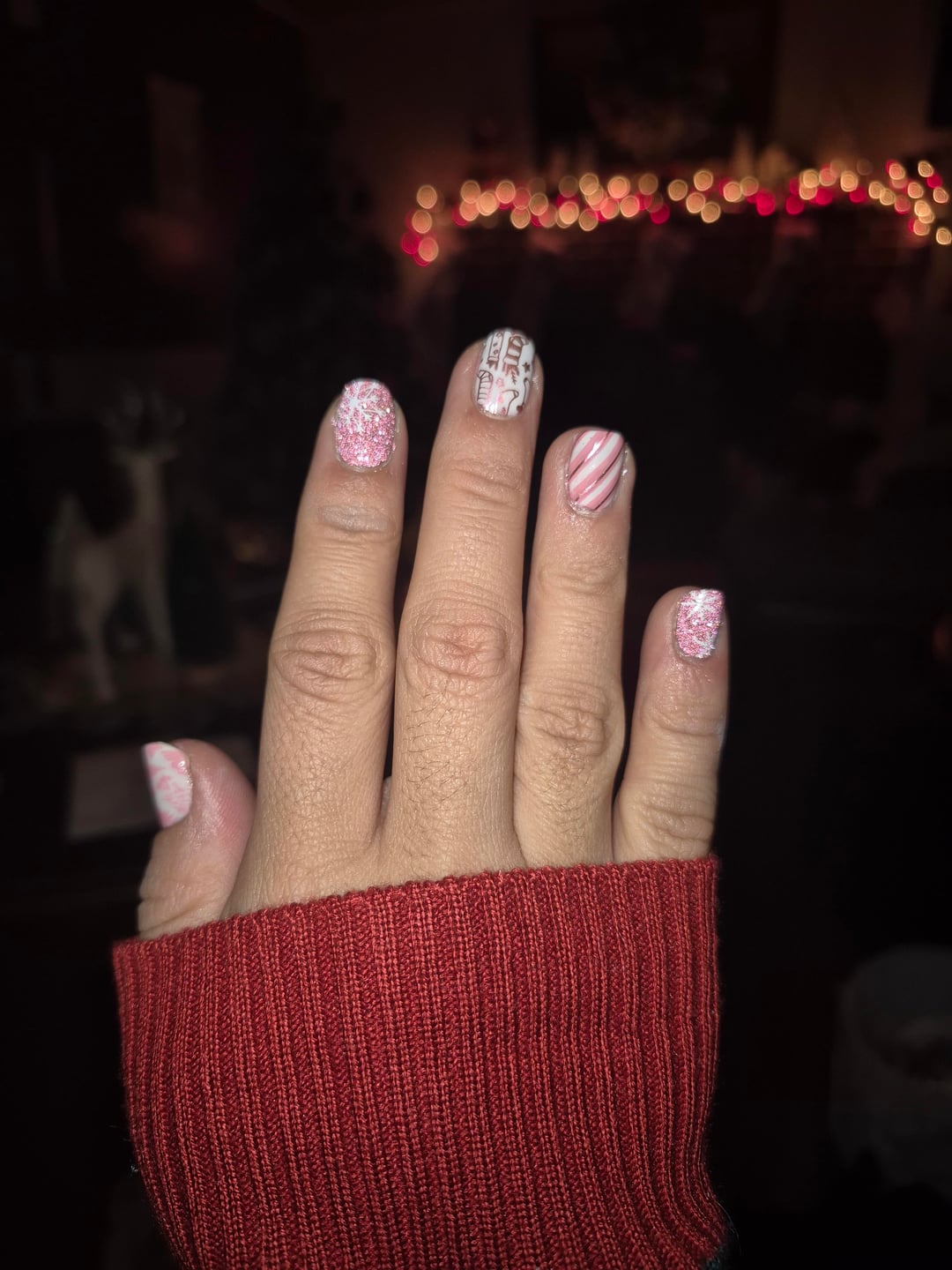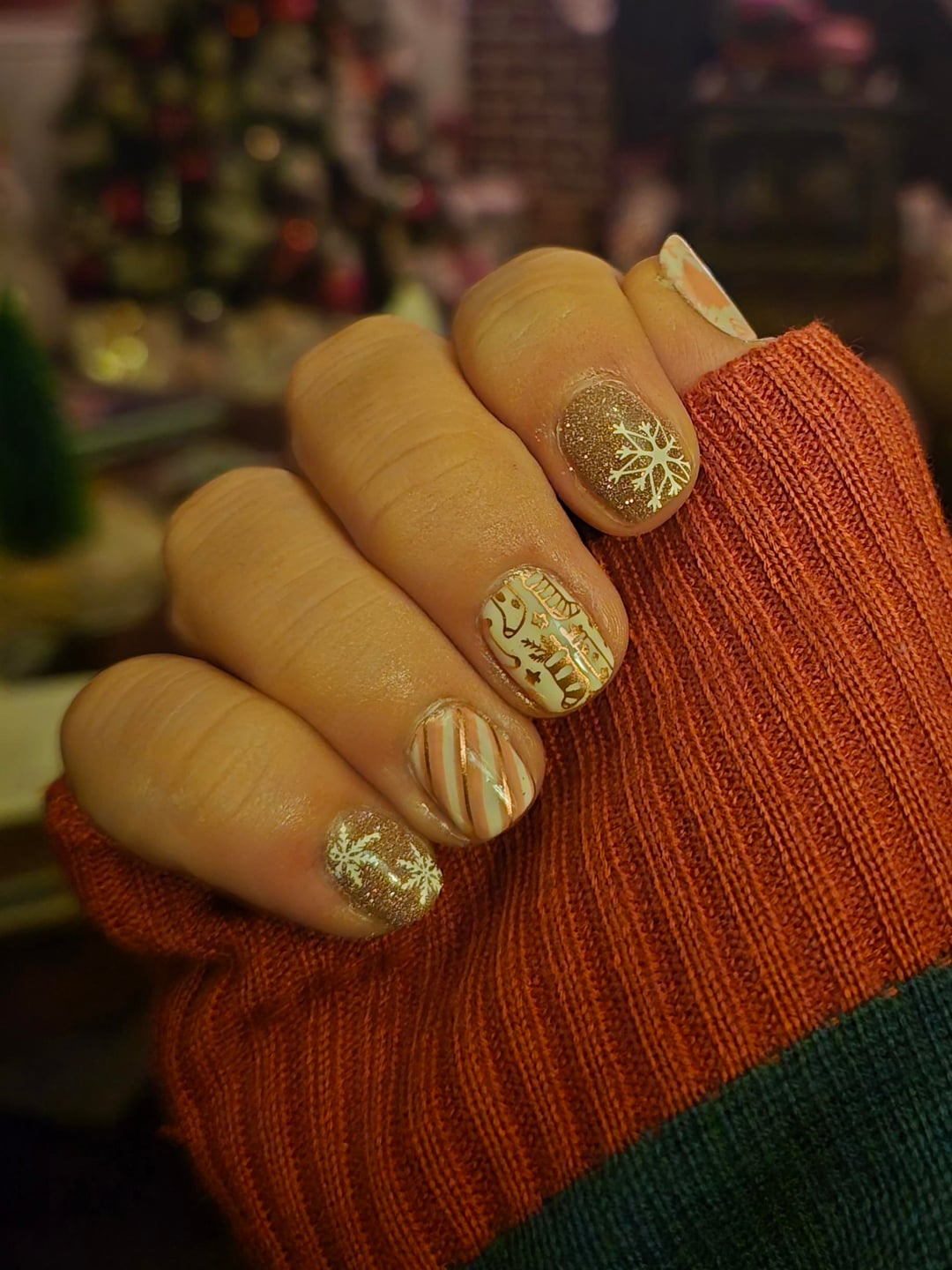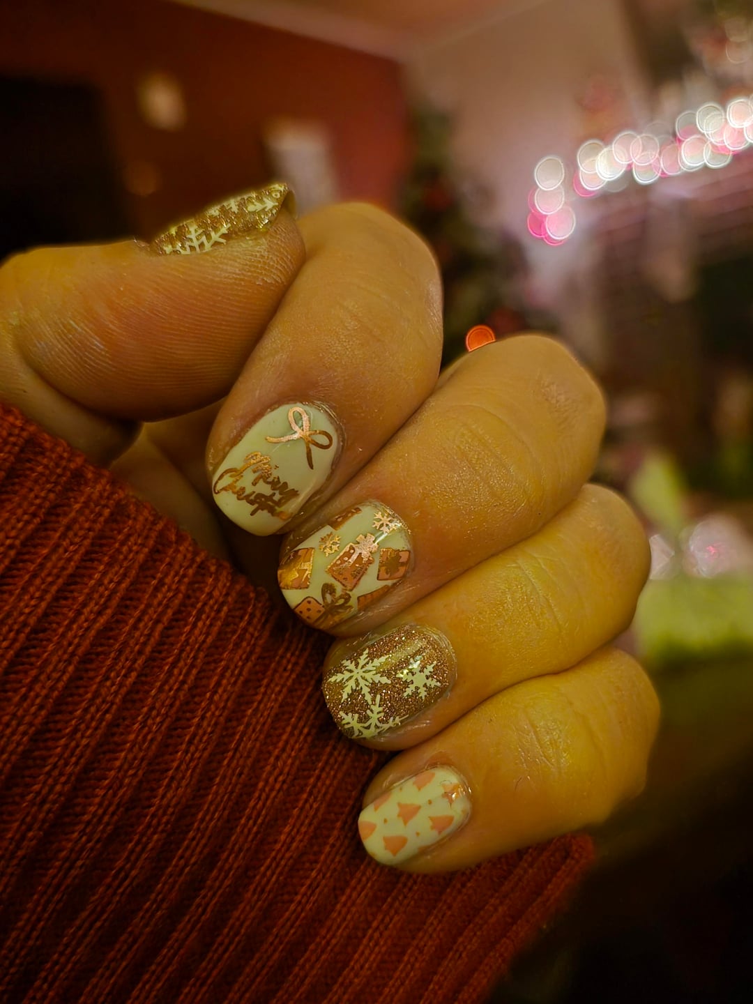Taking a break from my greens and reds to go pink for christmas. Used 2 coats of Polished For Days Soft Focus basecoat in Snow as my white, and 2 coats of Fancy Gloss Rose Stardust for my accent nails, which is reflective because I can't go without glitter for the holidays. Stamping polish is (ugh) Maniology Juicy Sweet Peach, Satin Blush and Bam White, who I don't support anymore but I have so many plates and polishes that I will still use them because I already spent the $$ on them. Plates are from Maniology, Beauty Big Bang and a few random Amazon brands.