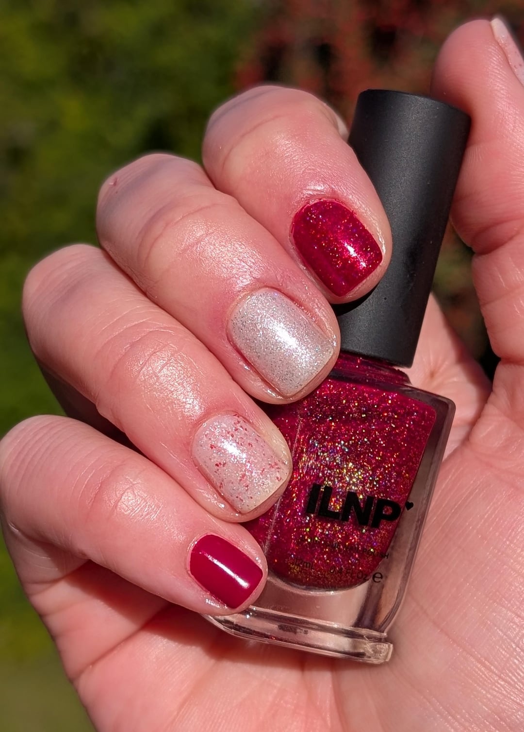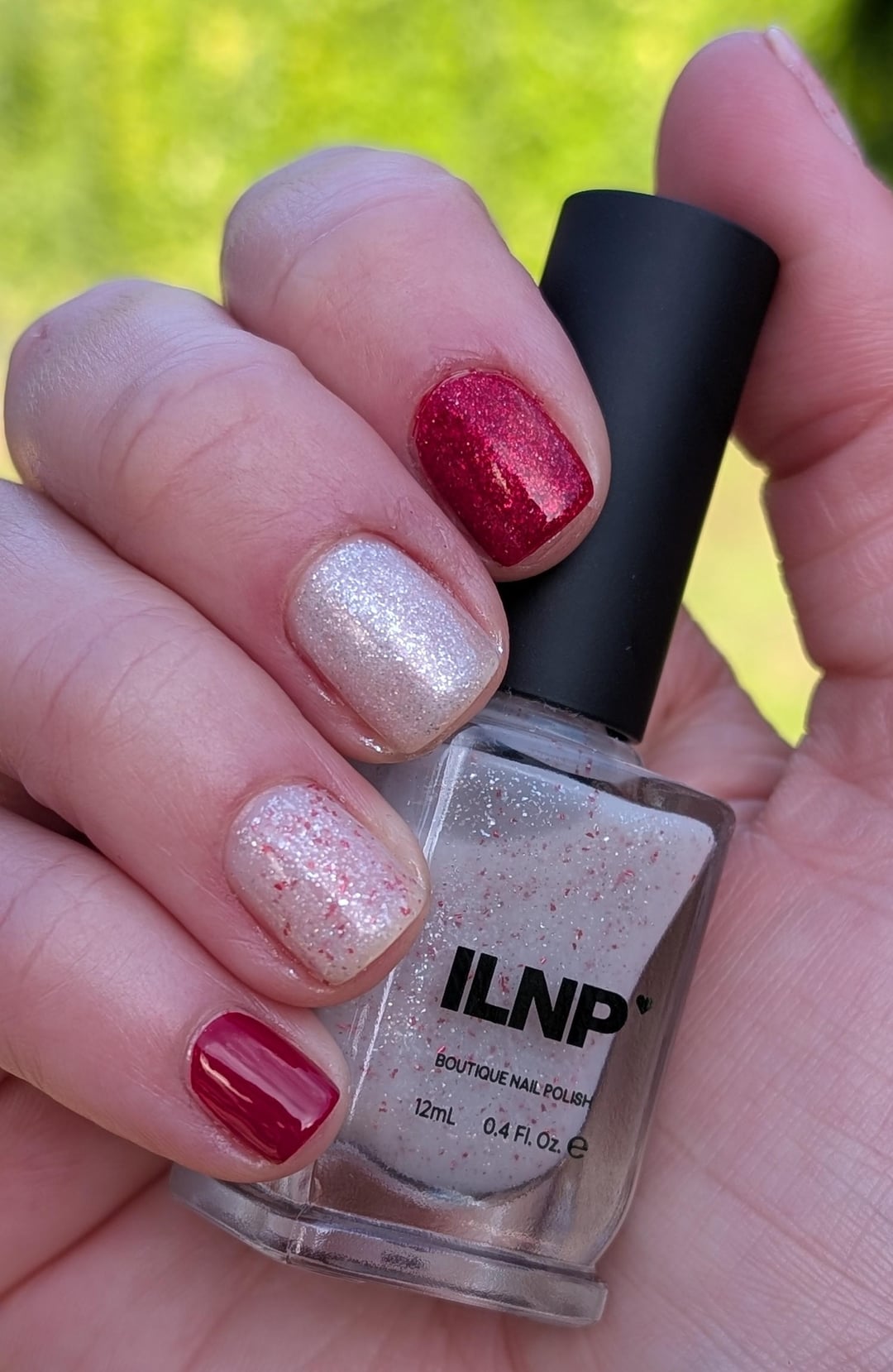 Thumb to pinky: ILNP North Pole, ILNP Say Love, ILNP Snow Angel, ILNP North Pole, and Cracked Calabrian Pepper by Content-Flight6371