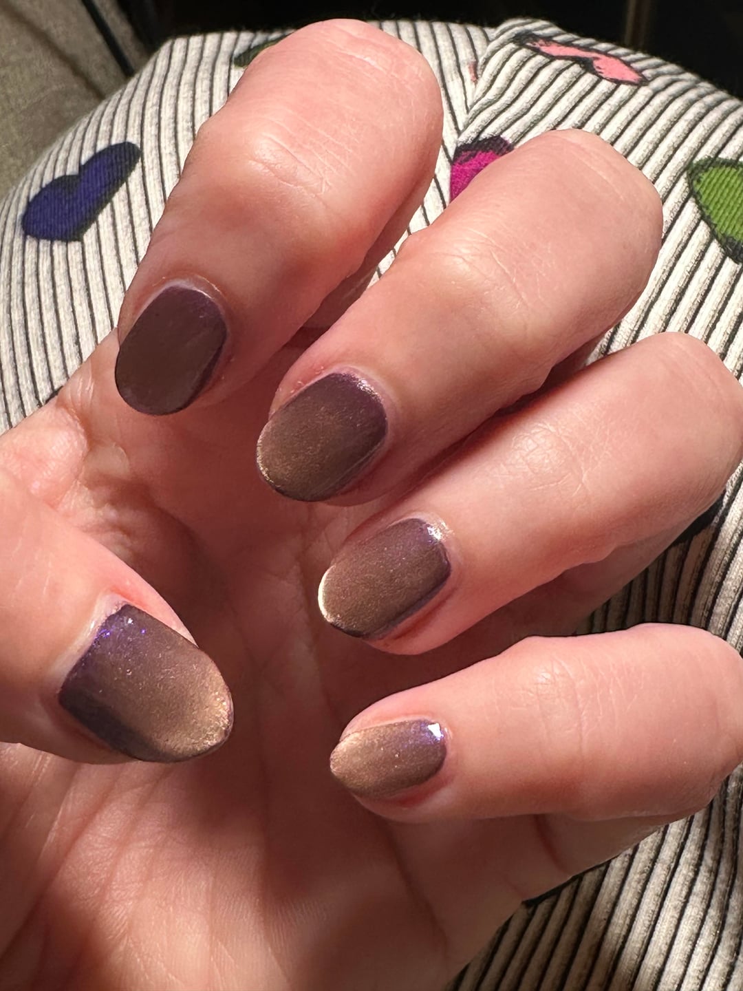 3. One coat magnetic polish, finger painted while in the U of a horseshoe magnet, then immediately magnetized in the intended style, and let dry