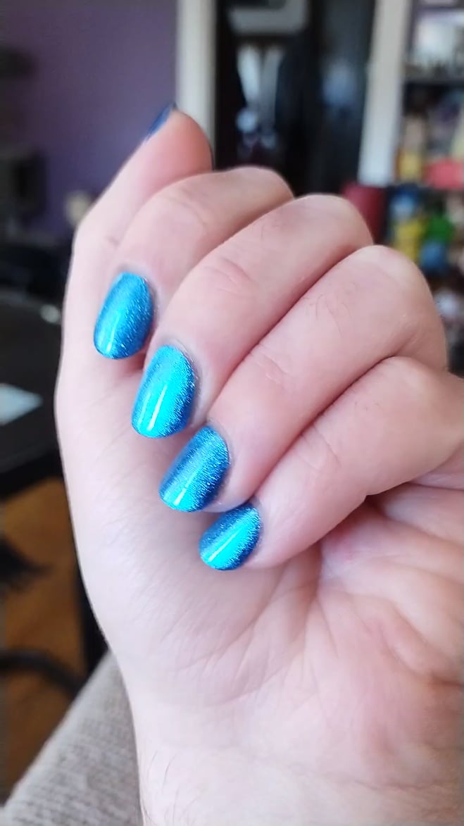 onion-i-think on December 16, 2025 6:14 pm Products used– Jen & Berries “I Clearly Have a Type” 3 coats Jen & Berries “Pole Position” magnetic effect TC, after that third coat to reactivate SnazzyMag magnet set, spun, with velvet puck Sweet n Sour Smicky Sauce base coat + Gloss Sauce QDTC