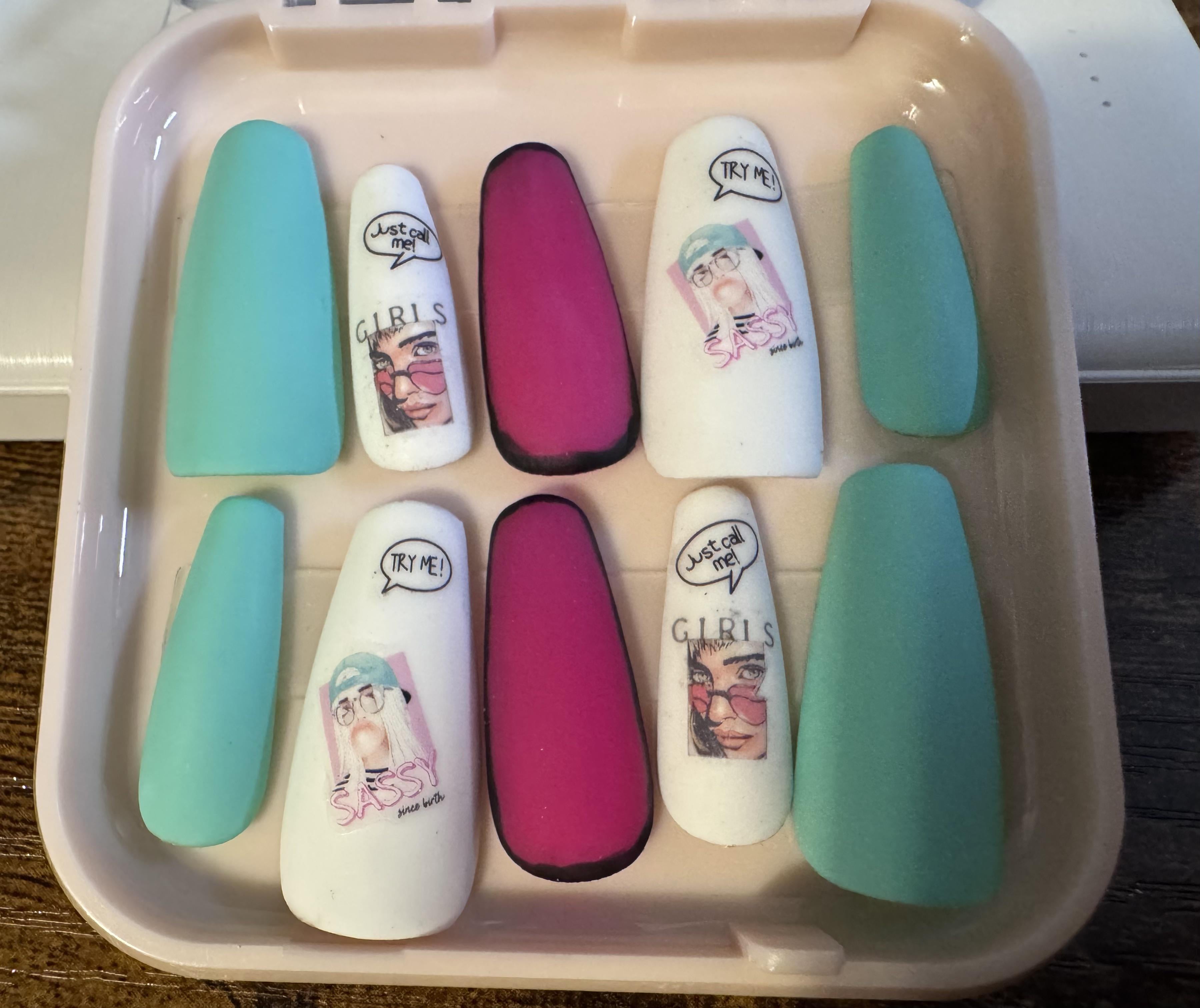 Made these for a friend. I attempted to do a little dot work on the teal nails but it didn’t turn out right, so I left them solid matte instead. I love that style just haven’t figured out how to translate it to a smaller canvas. by phyrbyrd14