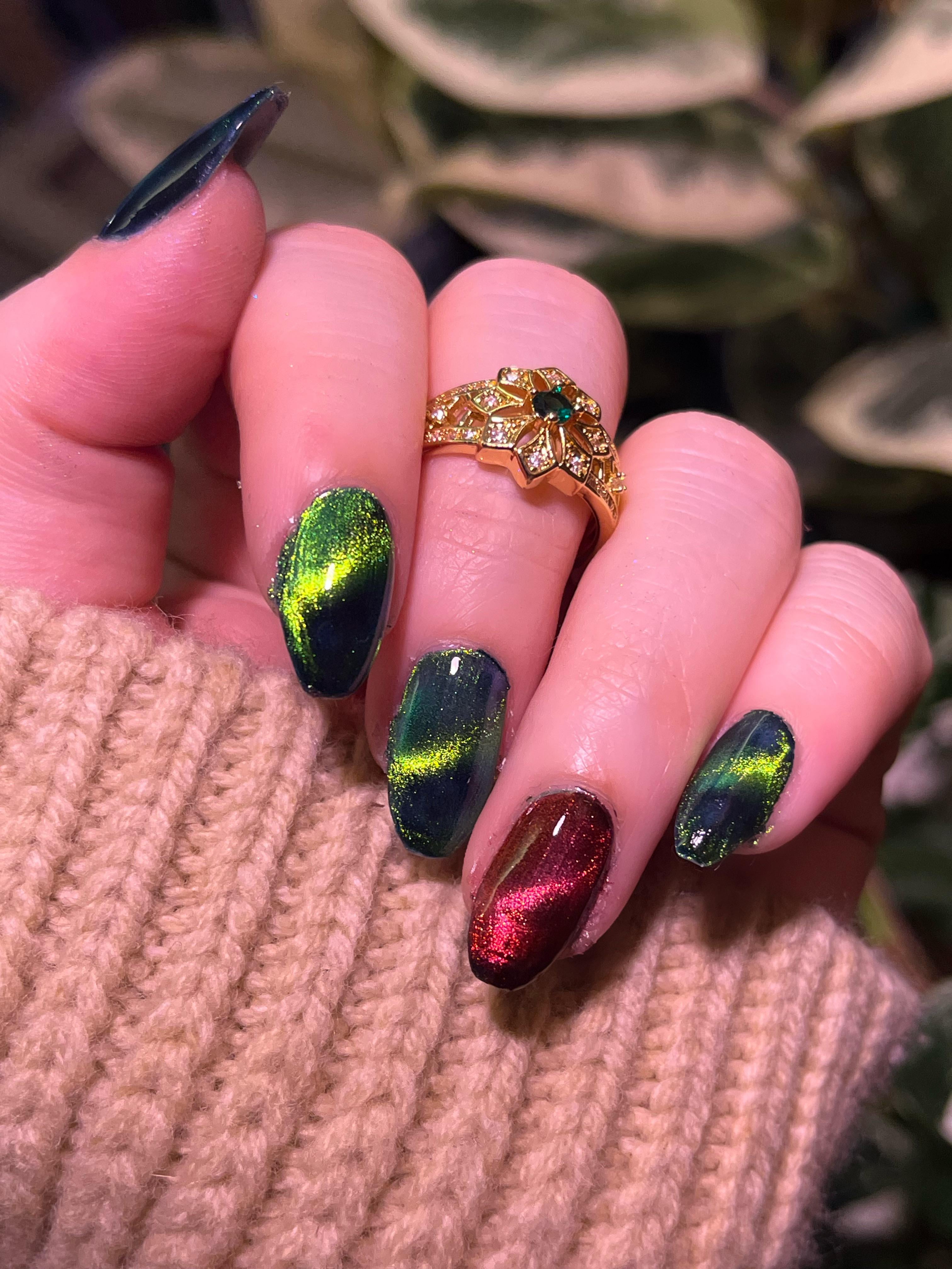 Red nail is Mooncat Silent Scream x2, then Cirque Ruby Slipper x2
