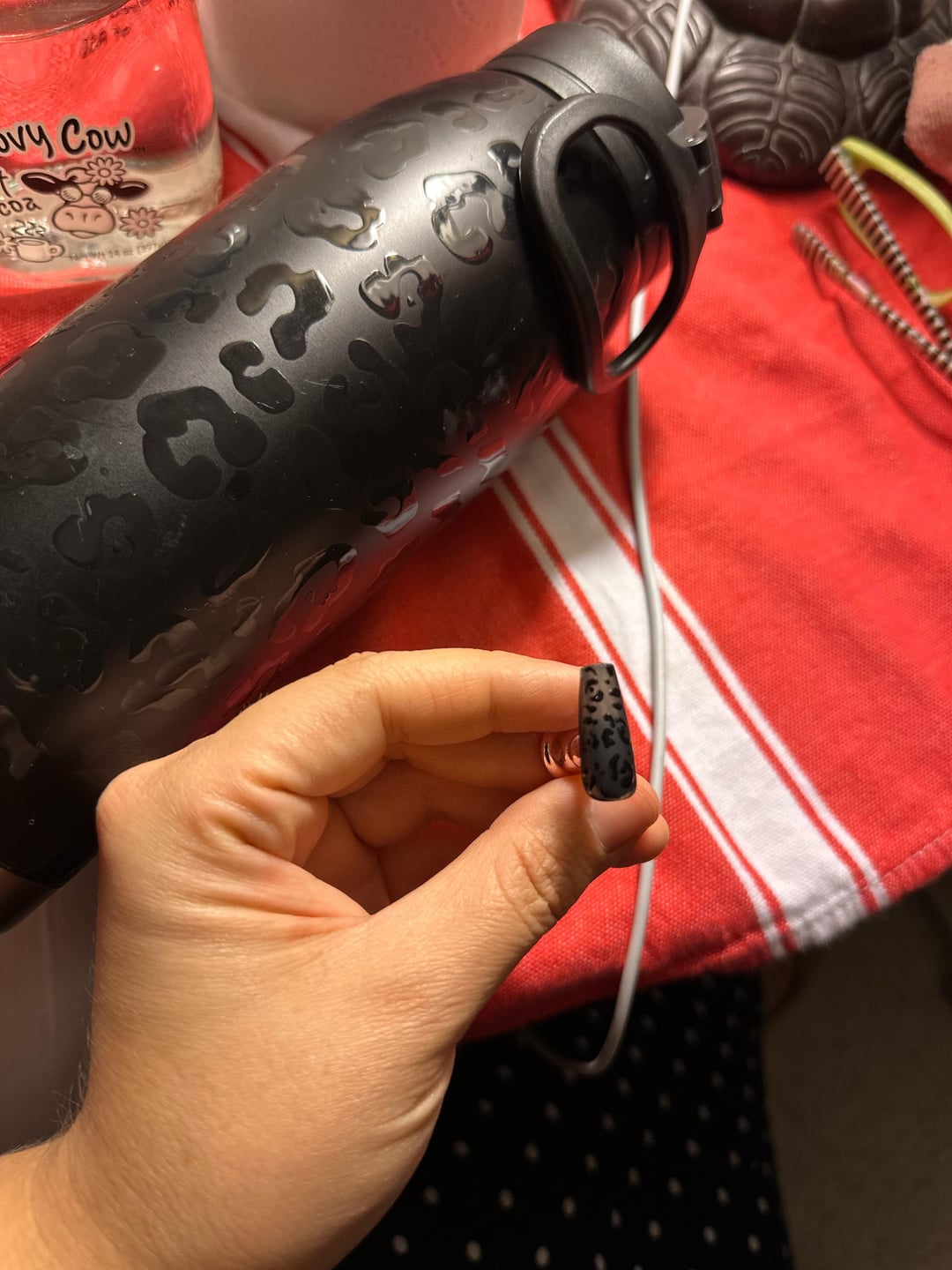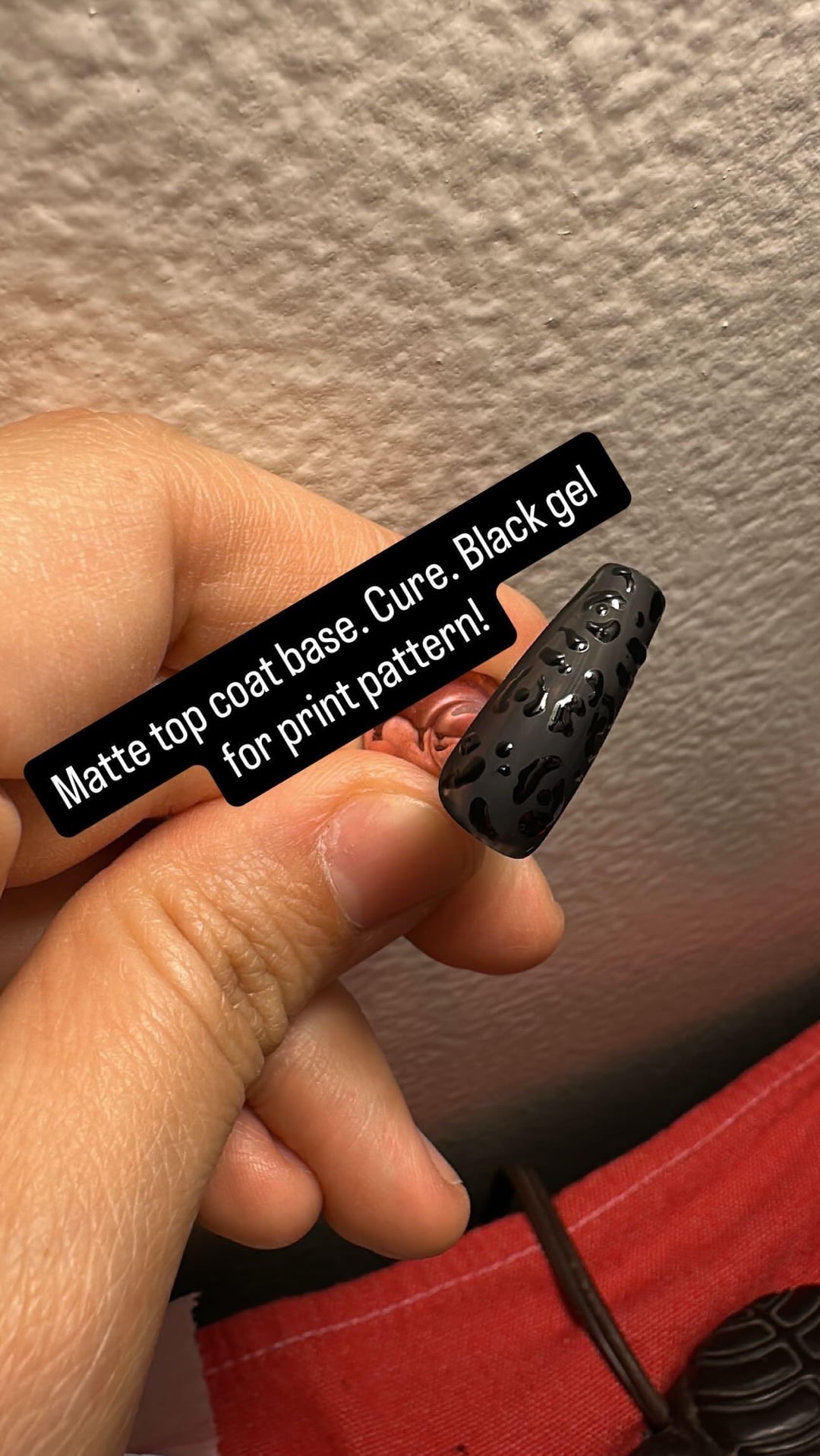 Hi all, I’m a beginner. I used black gel polish then cured. Then matte top coat by ROSALIND as a base then cured. Then I used black gel polish by ROSALIND as well for the print pattern. 🙂 by Curious_Wing_2018