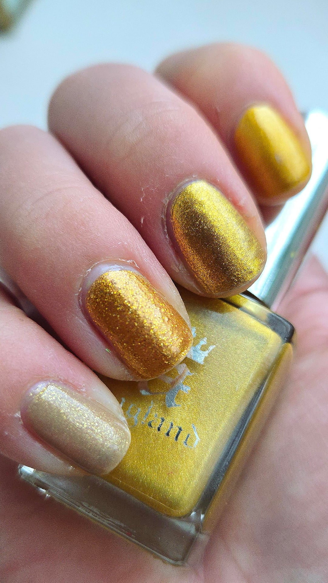 'Tis the season for gold polish! And since i never wear mine, I figured I'd wear them all at once.