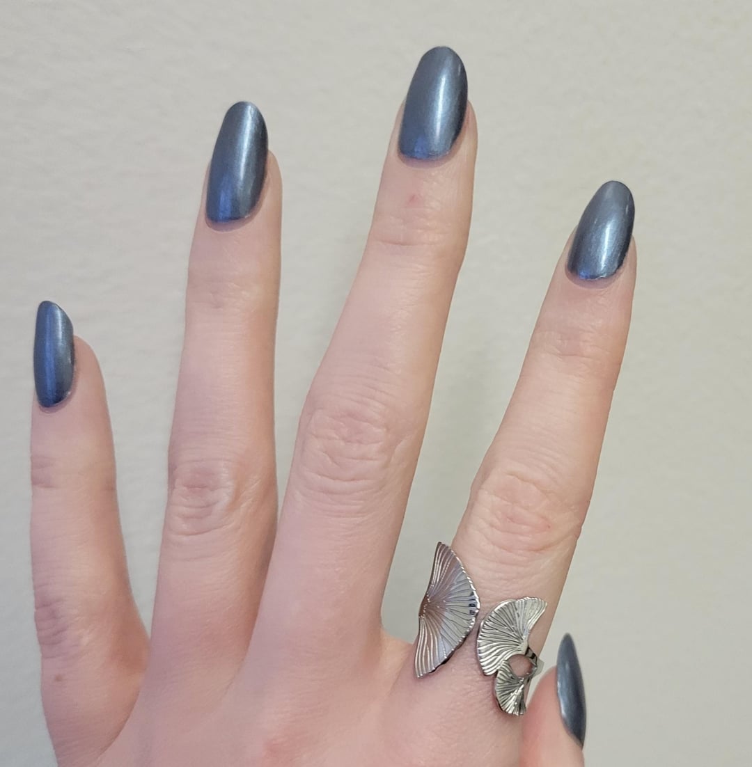 sidetoad on December 18, 2025 4:58 pm This is 2 coats of Cracked’s Space Glaze with Sally Hansen’s Miracle Gel Shiny top coat.