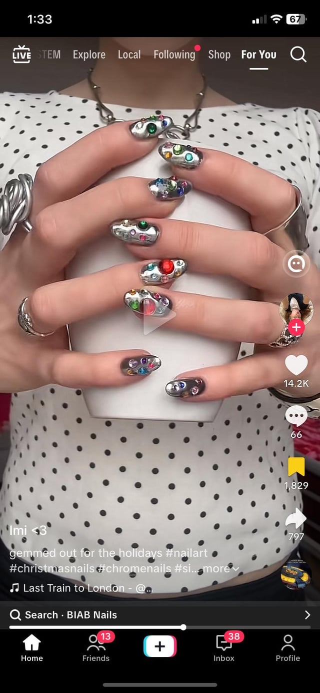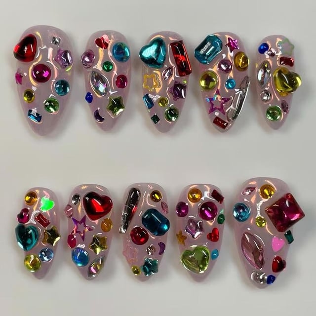I am looking to do something like the first and second picture. I understand how to do the third (gold) picture, is the technique of the first picture like the technique of the third, just with the chrome on the base color as well? The part I like of the first picture is how it looks like the gems are actually nested into the nails, but not sure how to achieve it without covering the whole nail in 3D gel which seems like it would be thick and not look great. I am a hobbyist and do my own nails at home.