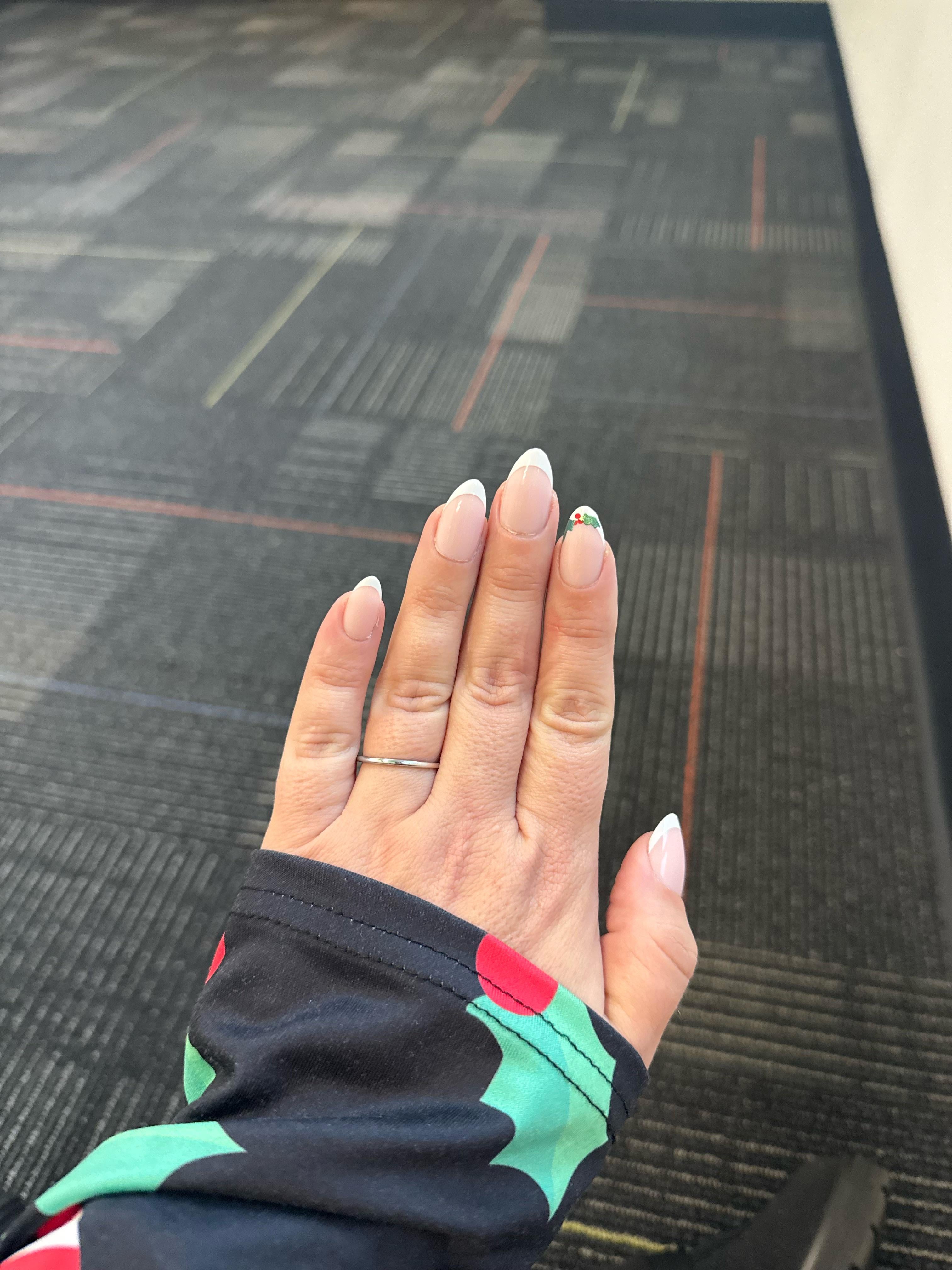 I think the cuticles are a bit messy on a few of them, and the French could have followed the shape of the nail a bit better and been dragged higher on the sidewall towards your cuticle.