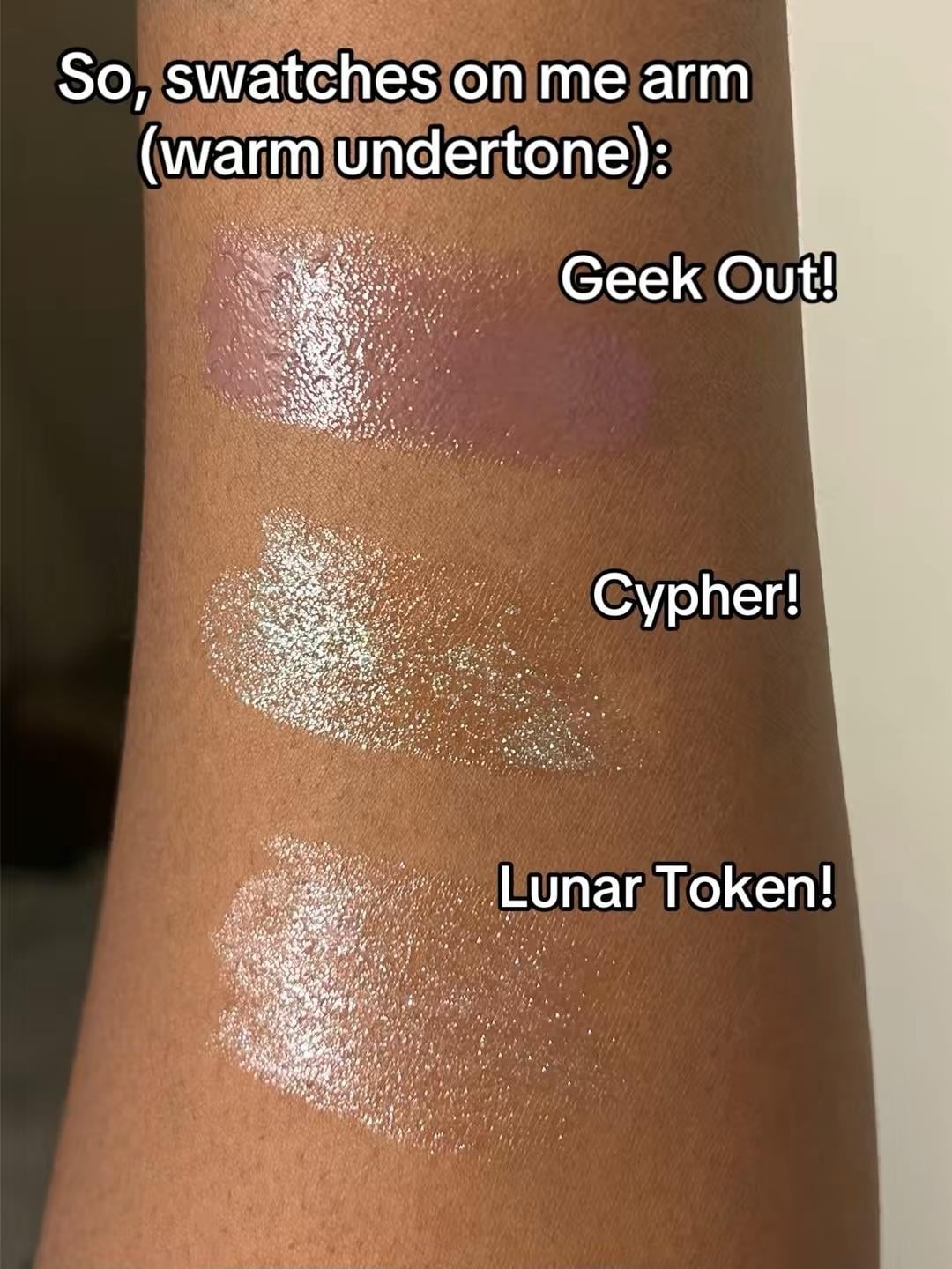 Anyway, I kept seeing these things (Kaleidos Lip Melts) being advertised on TikTok. TikTok is my main gateway drug to giving in to impulse shopping. Naturally, I gave in this time and got there shades of it. Those shades ARE: Lunar Token, Geek Out, and Cypher!