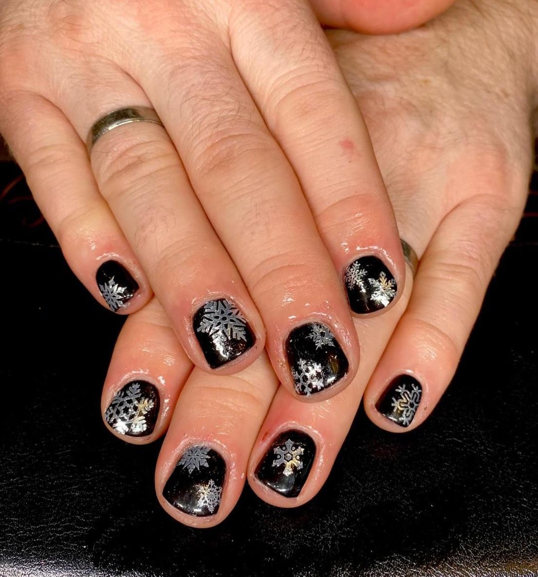 Not as full art as we’d have liked because we are limited to when the little ones are asleep but at least we actually managed to get them done in the end. The snowflakes are stamped. by bluephoenix39