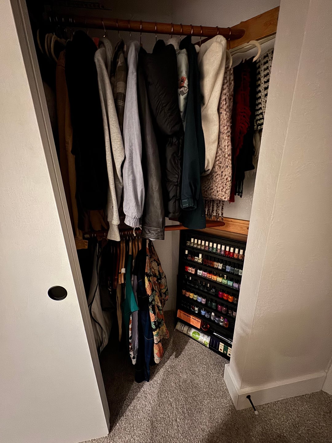 Just wanted to share my modest collection and how perfectly the case fit leaning against this angled wall in my closet! I was stoked to figure this out because it’s a pretty fat display and this fees up so much space