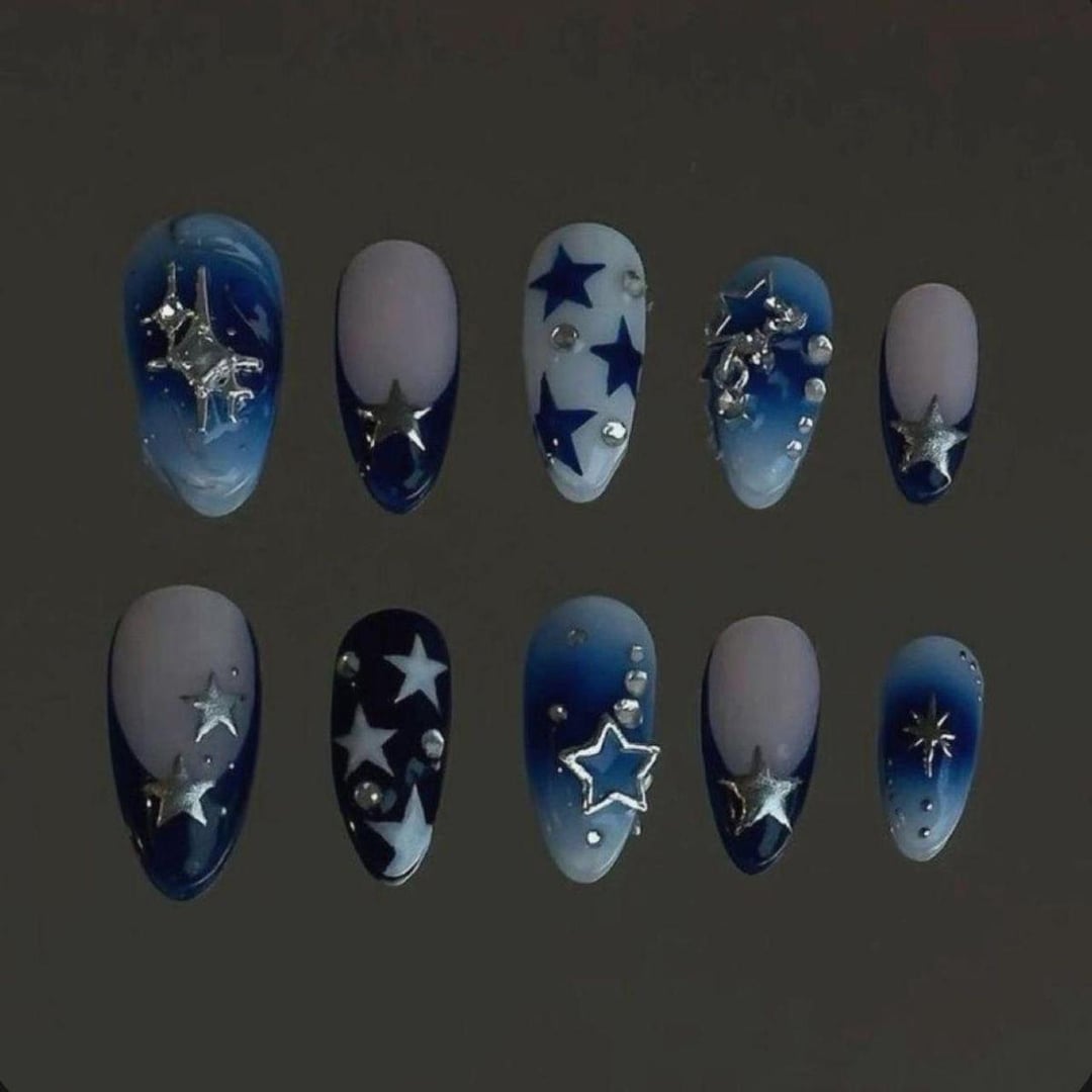 1. The blue is my favorite color scheme but change the French tip to something more like set 1, more y2k vibes which is fun!