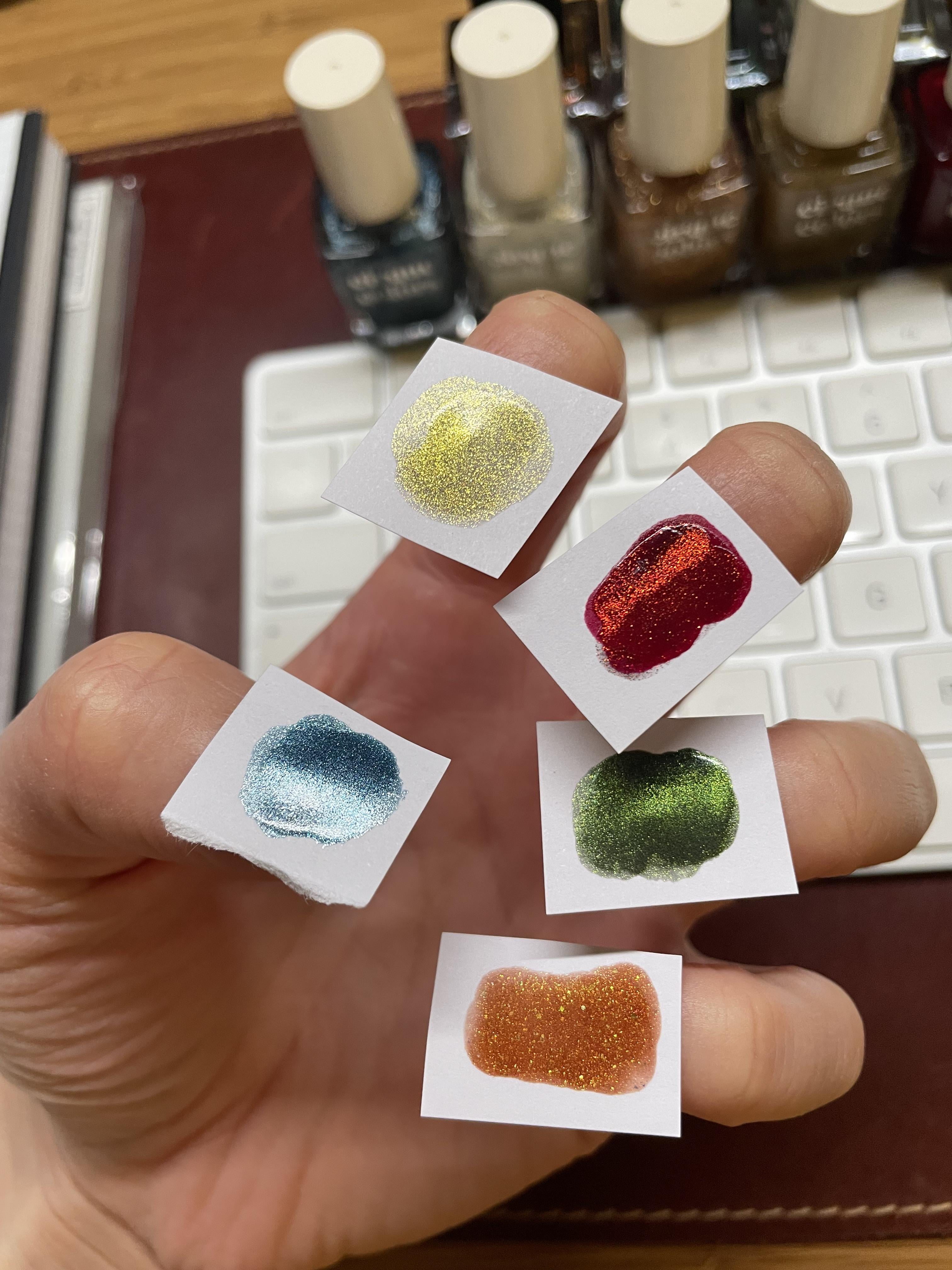 And I have almost all different polishes/combos planned for the other hand! I looked absolutely insane with all these tiny papers taped to my fingers 😆