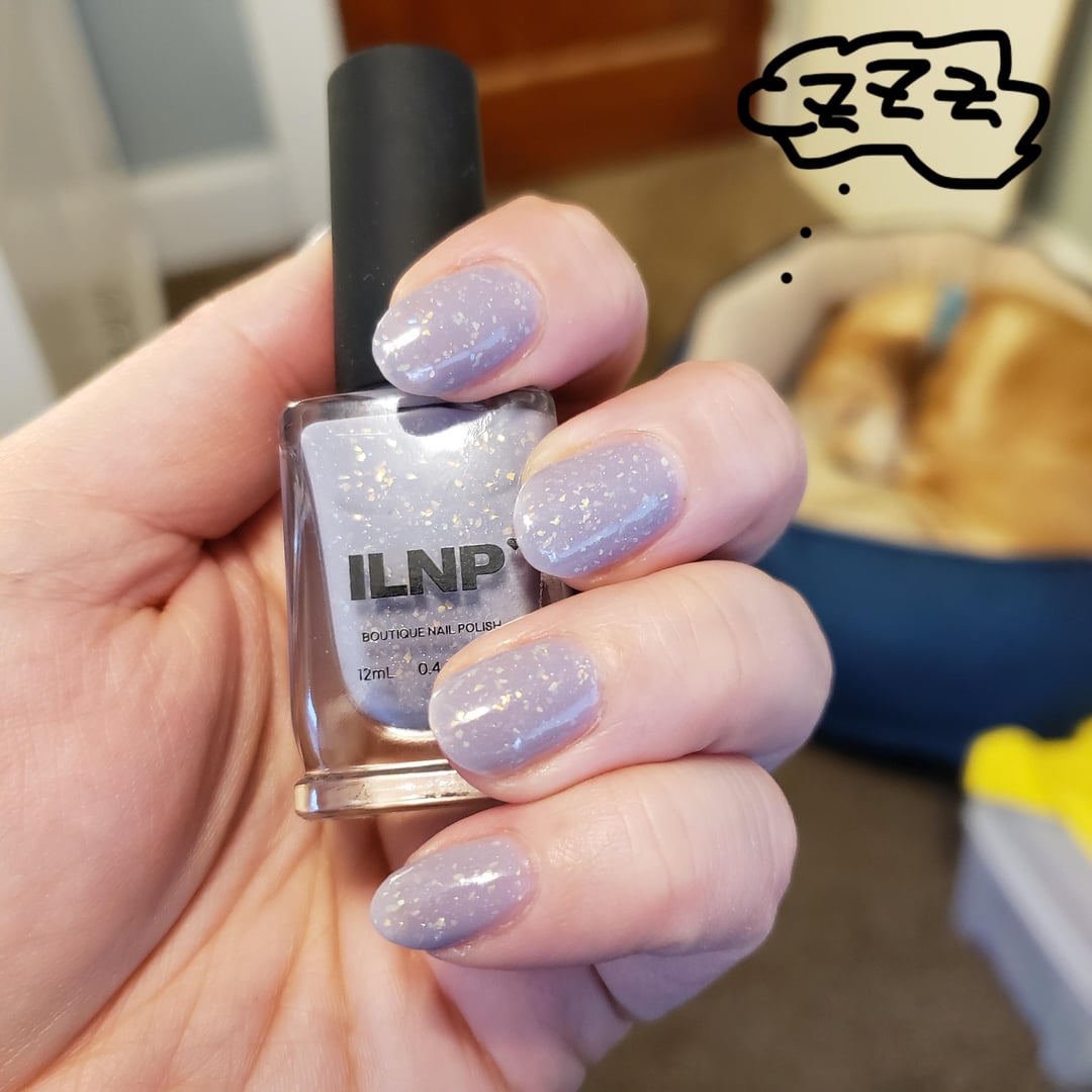 Zero shade to ILNP or their lovely flakies, just of all the flakies why did I, the pinkest human alive, buy this very cool toned lavender? I could not tell you. My guess is just that it’s a beautiful polish and I was not yet any good at predicting what will look good ON me.