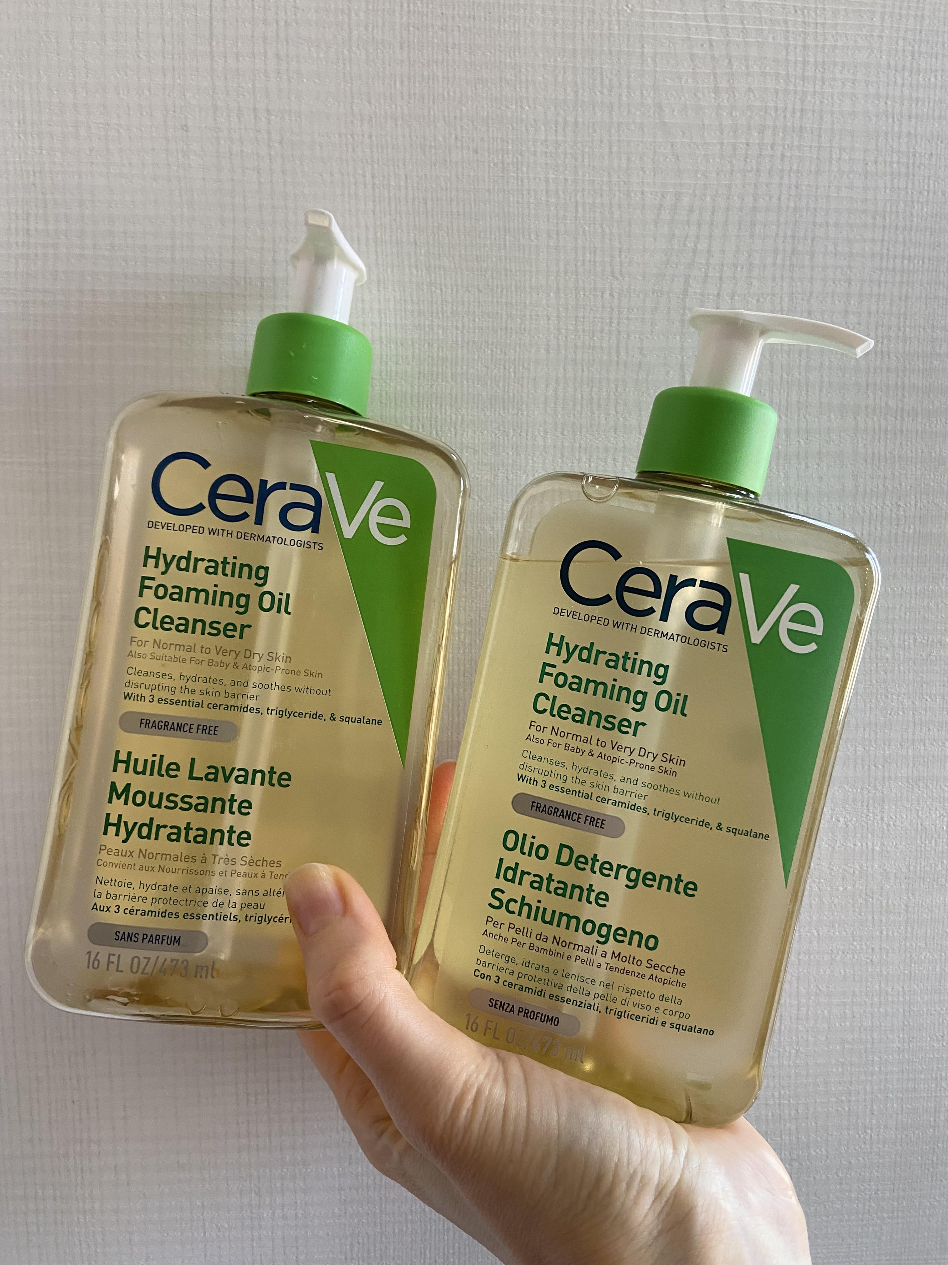 CeraVe Hydrating Foaming Oil Cleanser. After trying numerous cleansers, my super reactive skin seems to tolerate this so I’ll stick to it! It doesn’t make my skin feel dry and it doesn’t have any annoying fragrance.