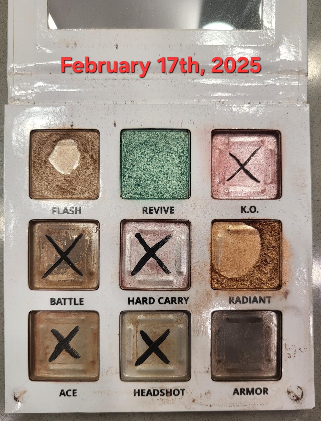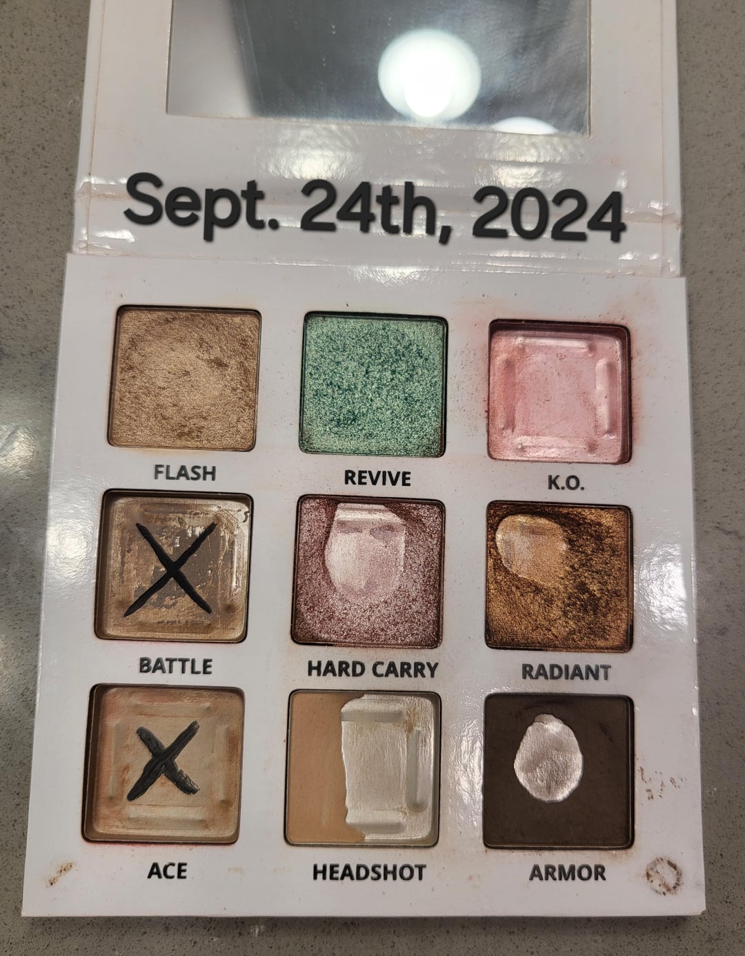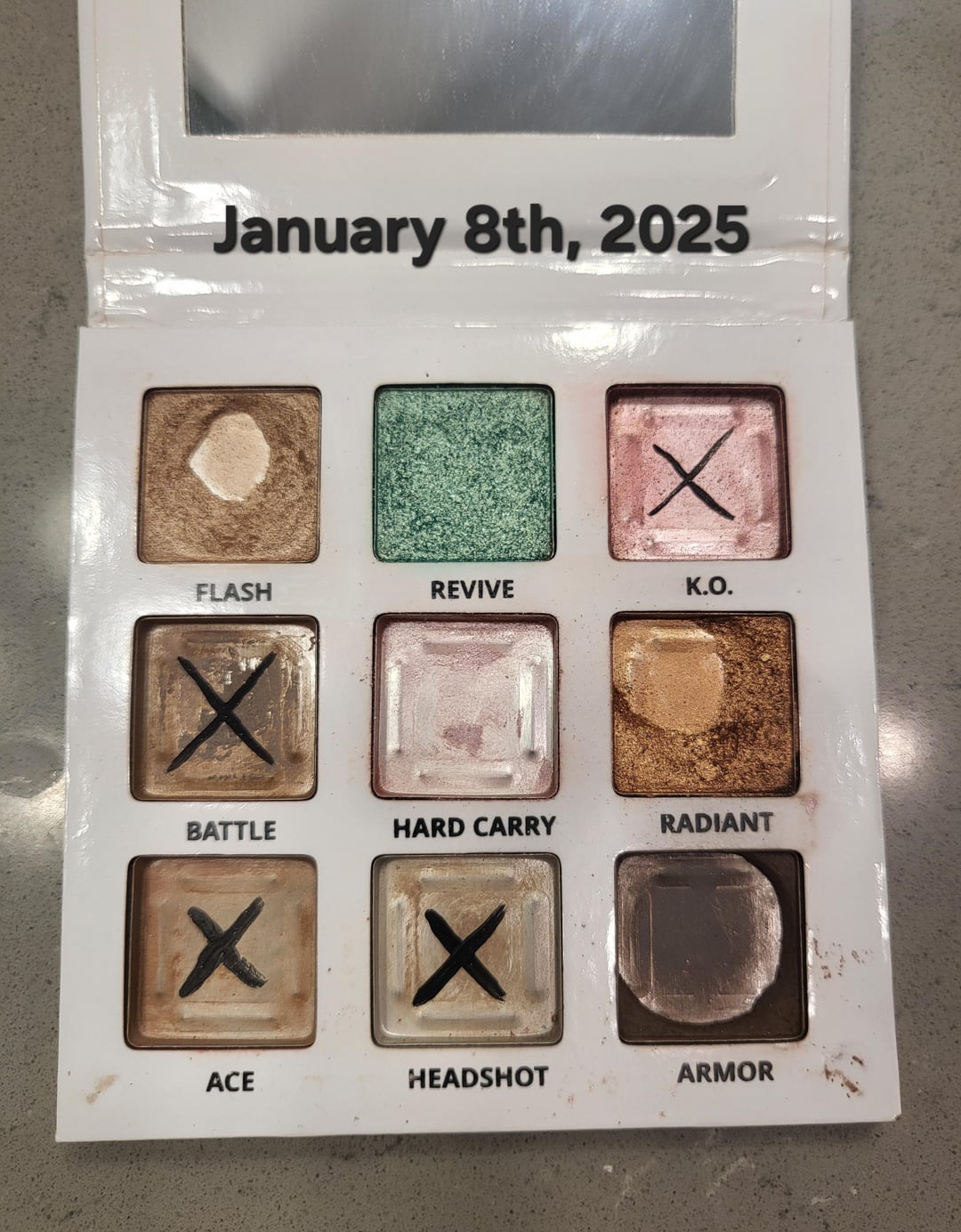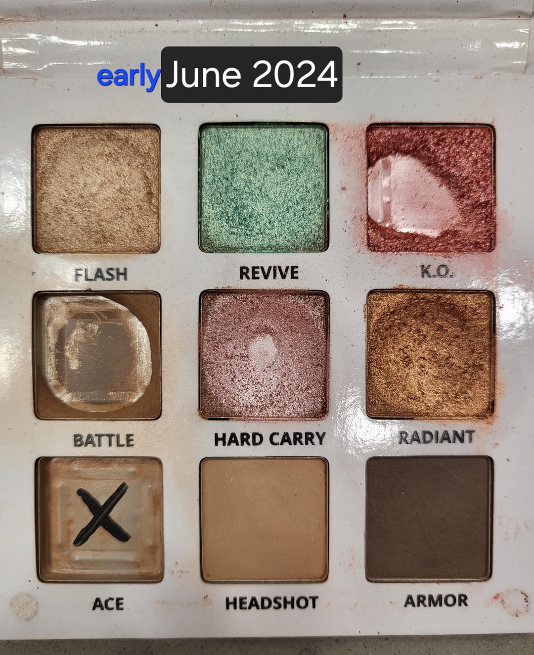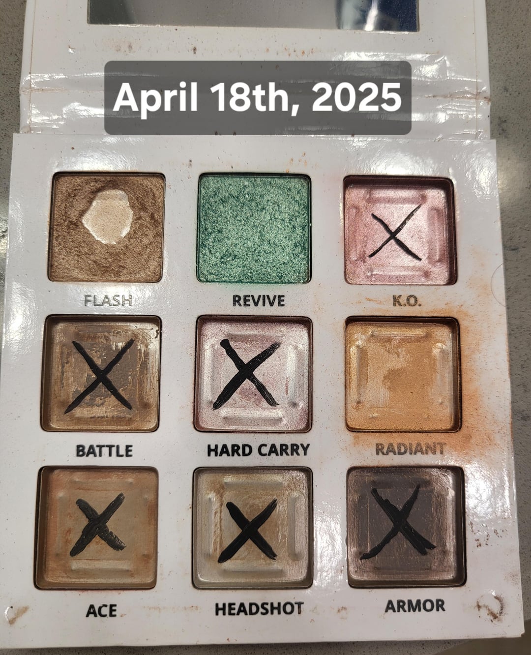 Darling Doll Cosmetics Combat Squad palette. 18g total and i used it all!!!!