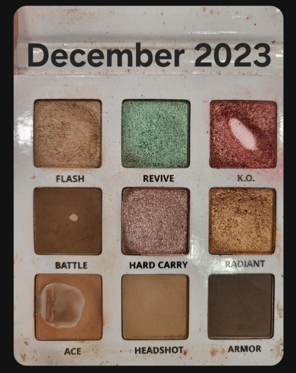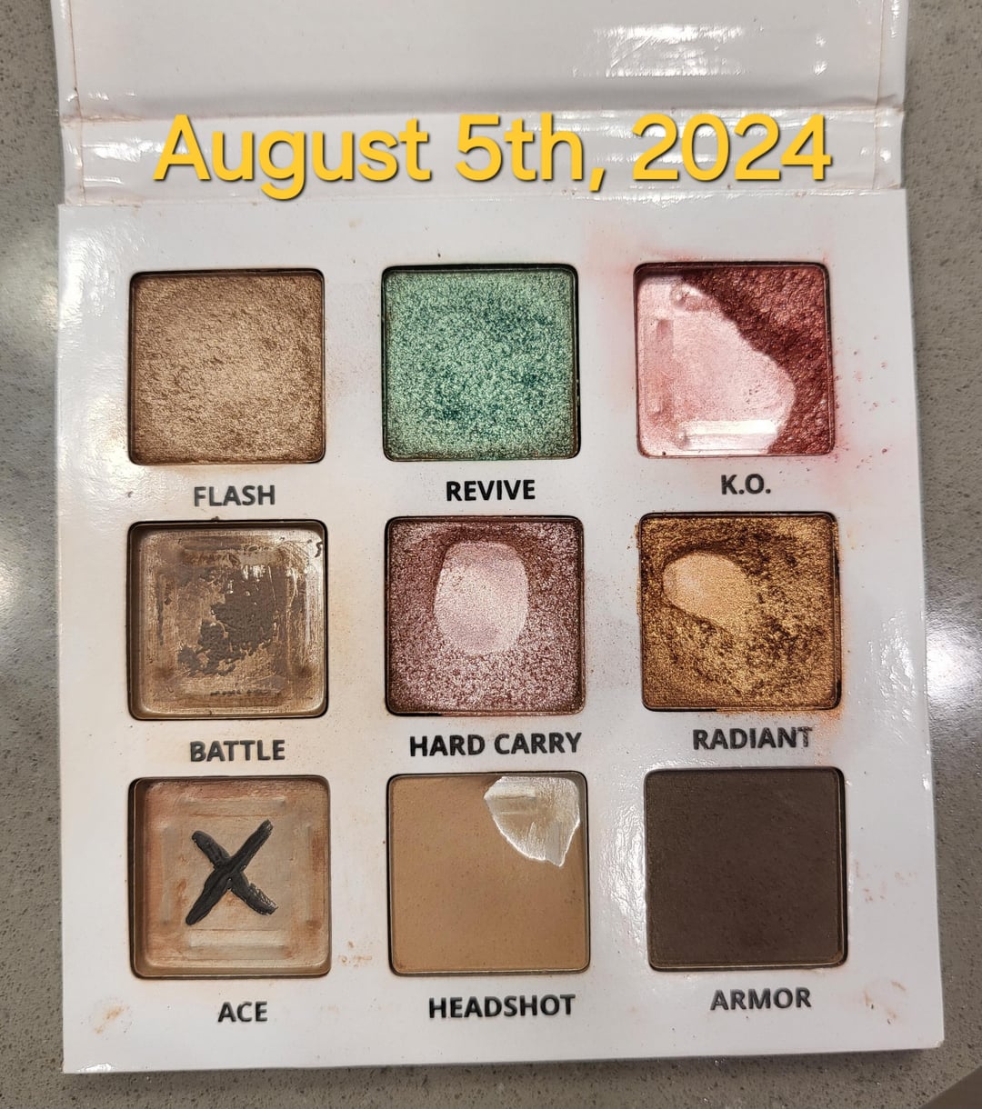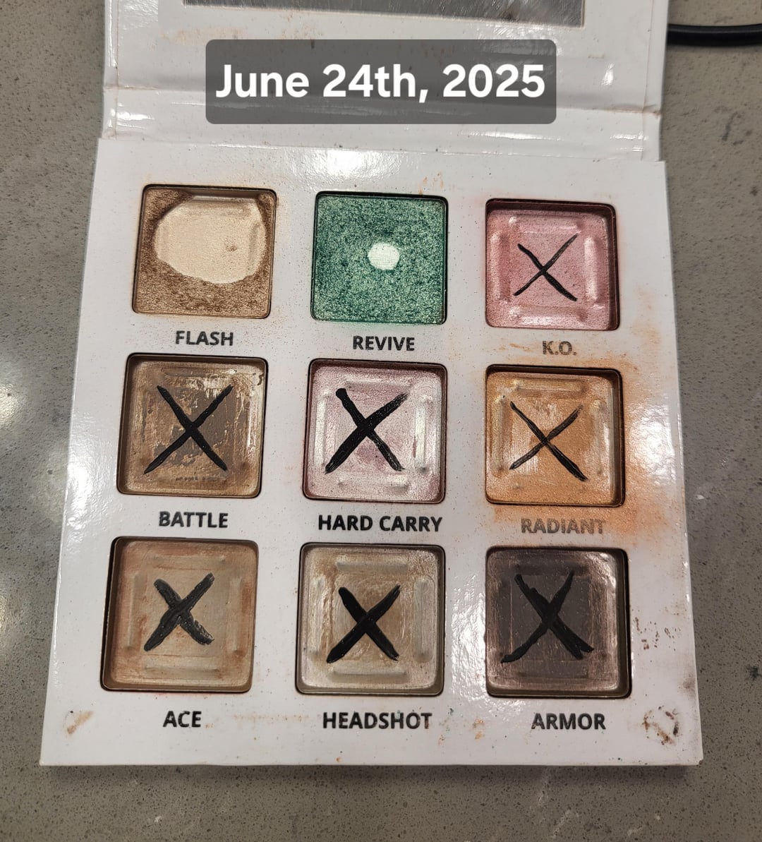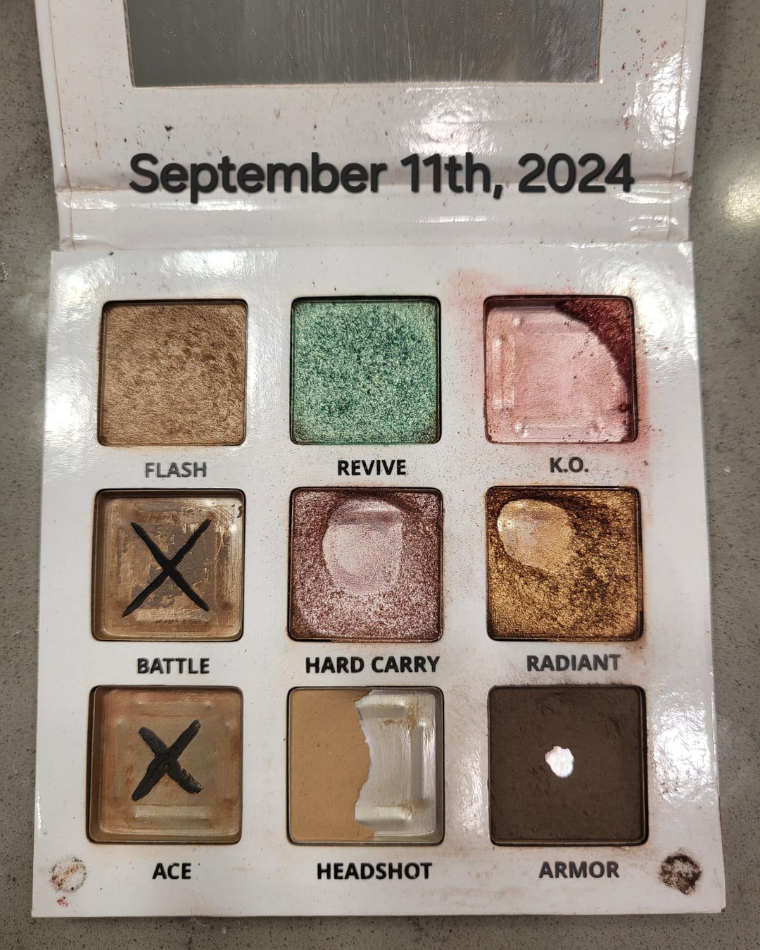 Darling Doll Cosmetics Combat Squad palette. 18g total and i used it all!!!!