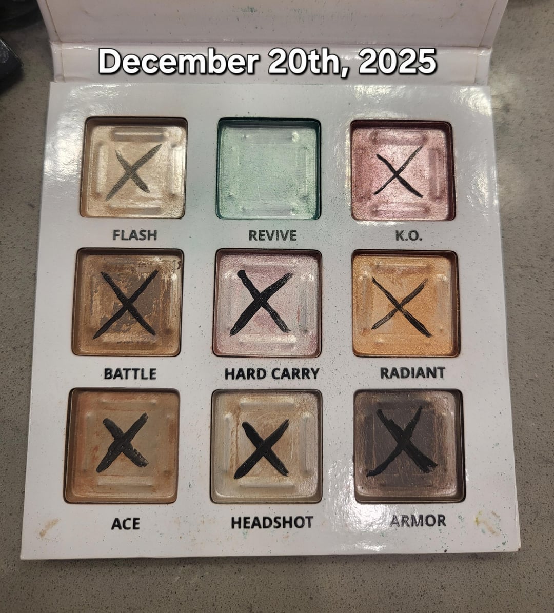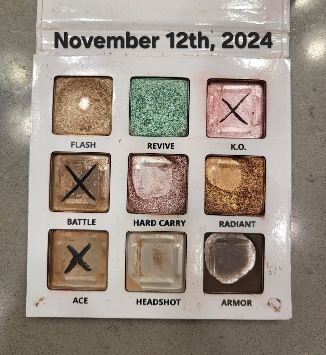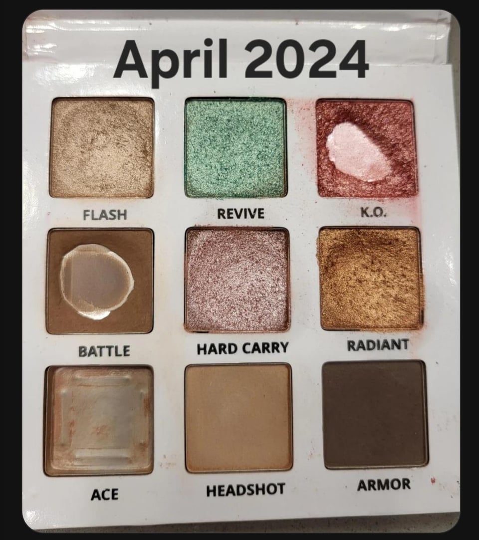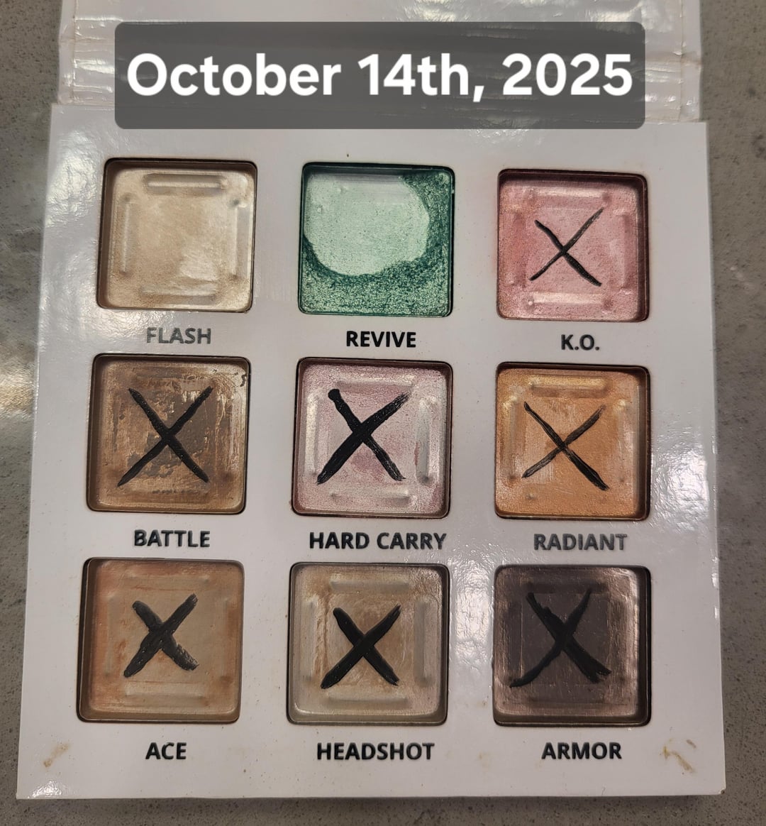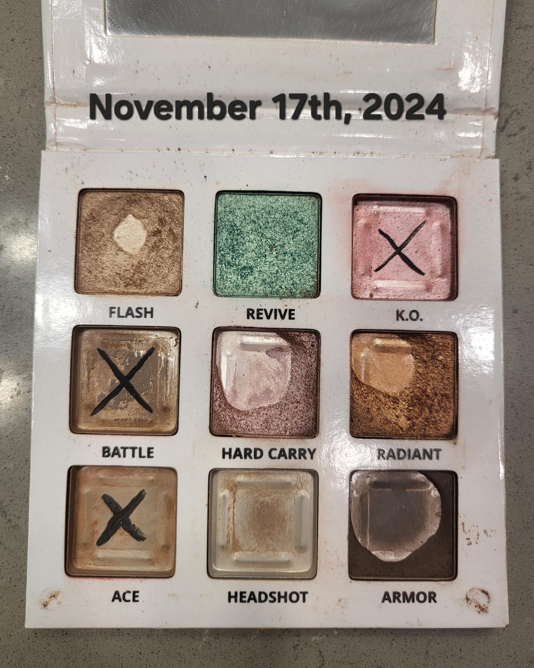 Darling Doll Cosmetics Combat Squad palette. 18g total and i used it all!!!!