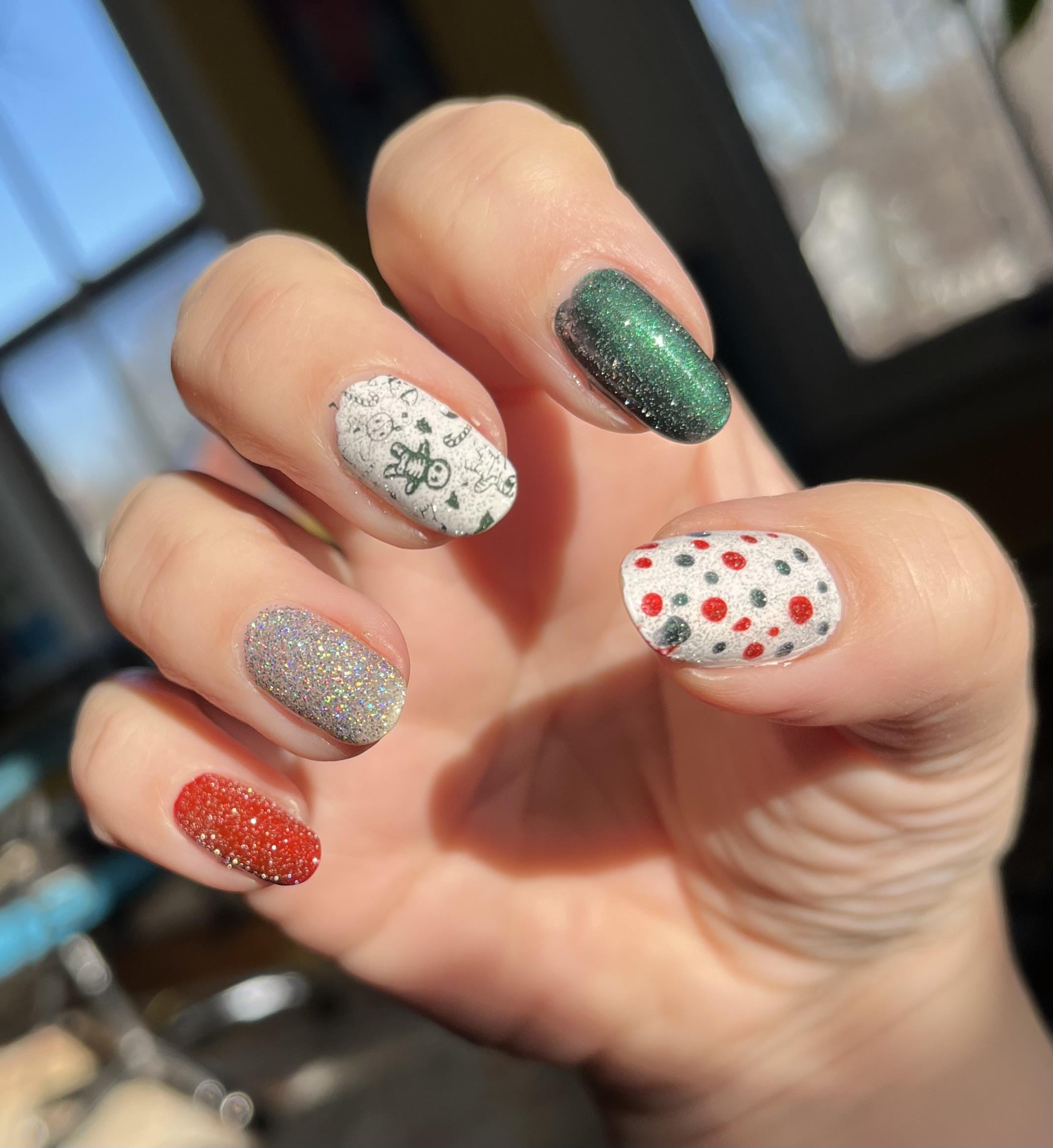 I started doing my nails earlier this year and have slowly slid down the rabbit hole of magnetics, stamping, and other art 😂 I have MS and finding a creative hobby where I can sit to do it while it doubles as Occupational Therapy for my wonky fingers has been great! This was my first time trying out stamping and my dotting tools. Still have to get the hang of it, but it was super fun!