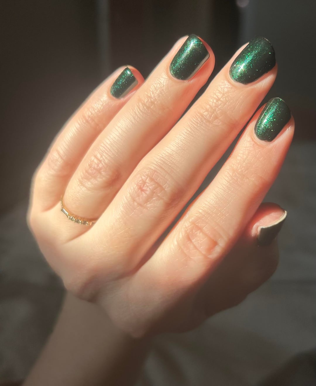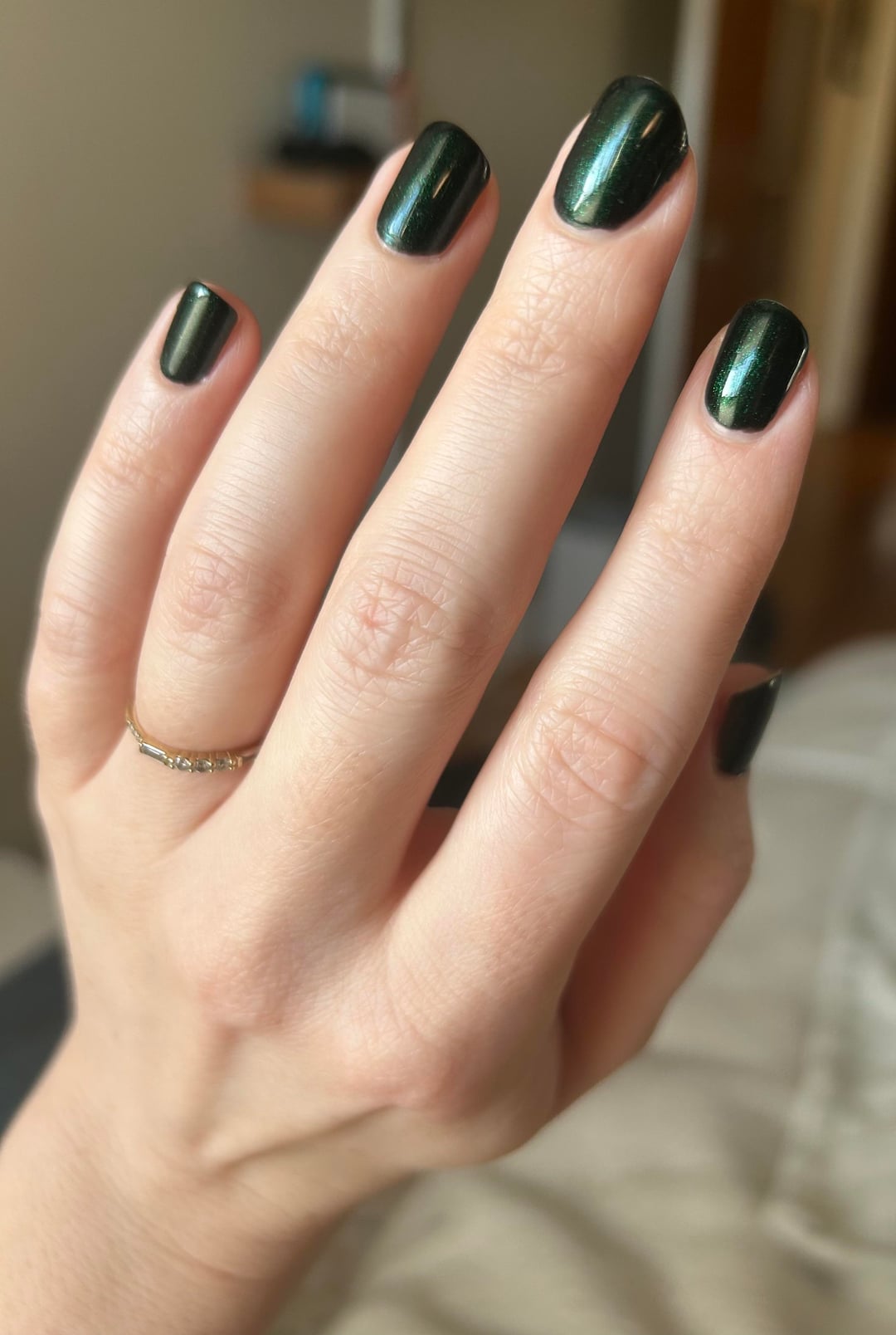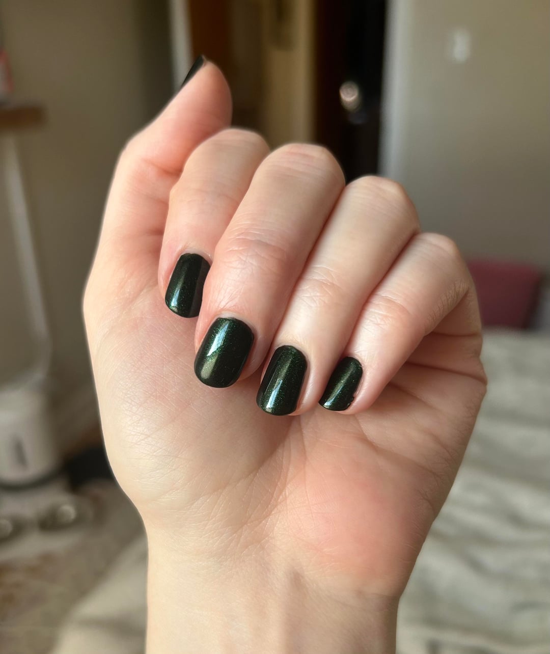 1. This is 2 coats of Access Denied by Mooncat with Seche Vite base and top coats. Idk why but it’s my go-to Christmas polish!