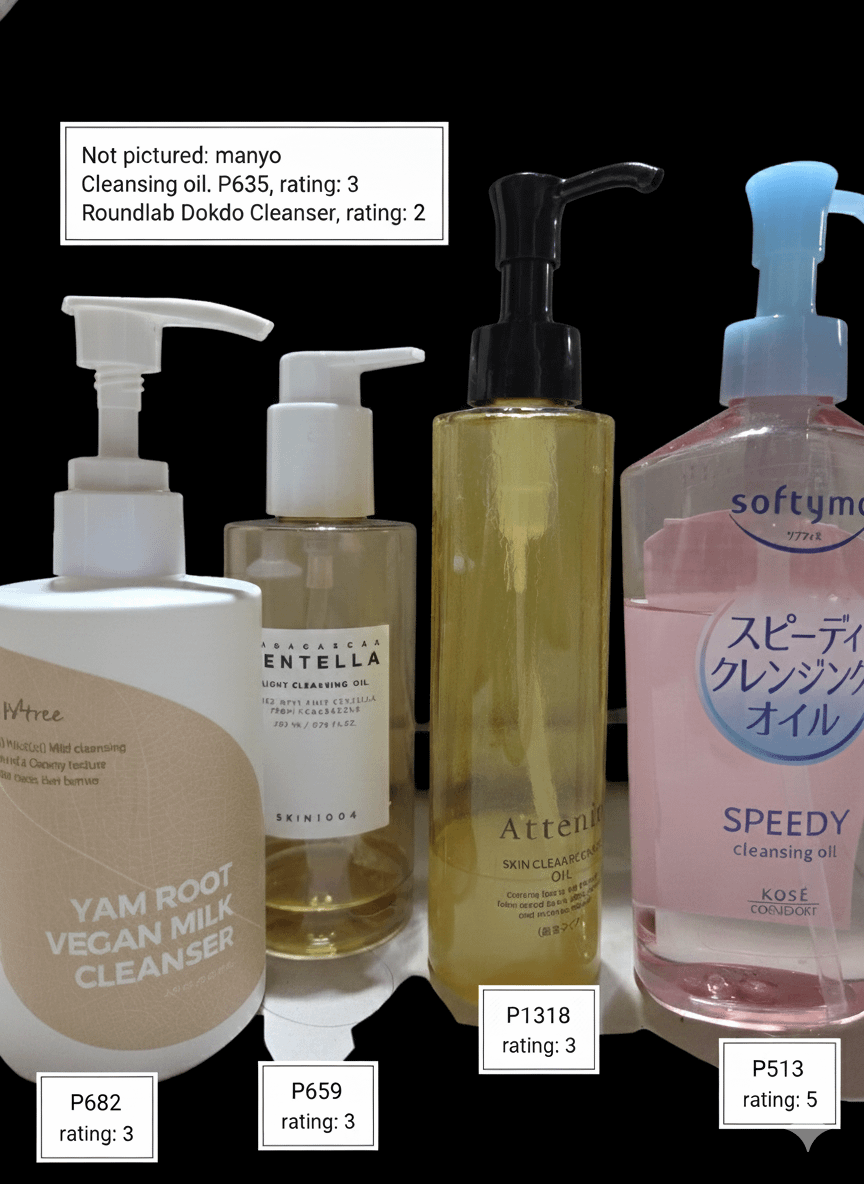 Dry, dehydrated skin here. For context, I consider myself a skincare newbie and bought items that in hindsight are probably not suited for my skin but I tried to give all products a fair shot. Order of items rated is based on when I purchased them(I used up the manyo cleansing oil and lost the half empty dokdo cleanser, which is why they're not pictured) Rating is based on 5 criteria with 1 point each.