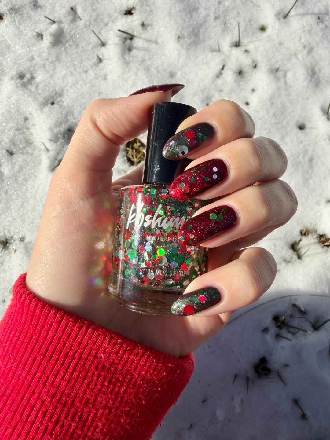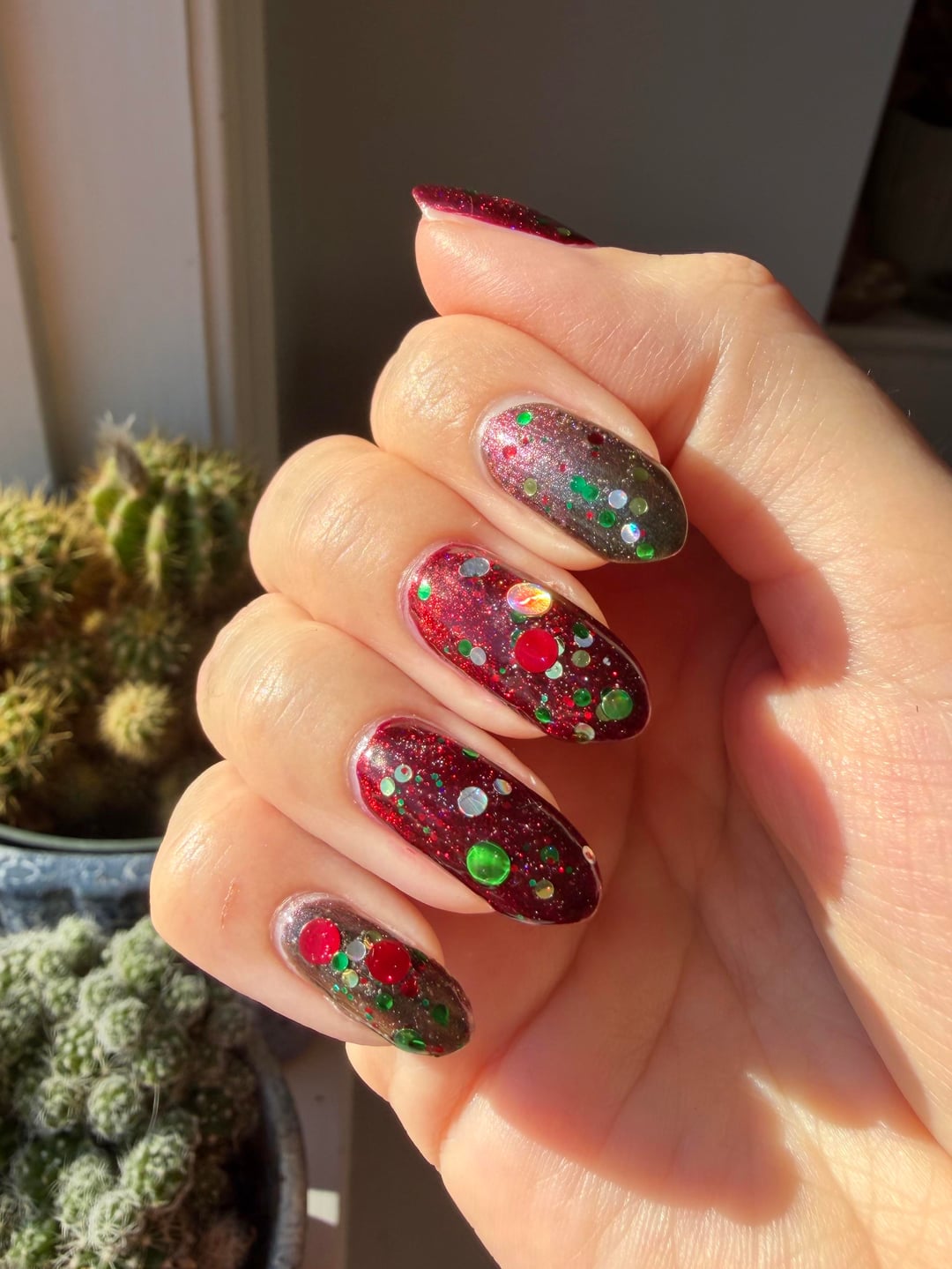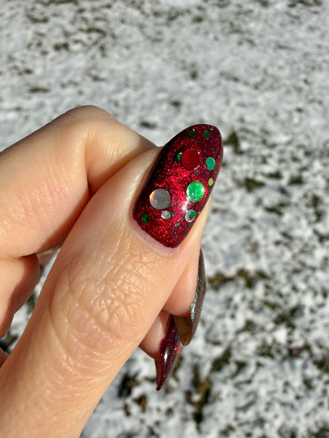 I love these polishes together! This just screams Christmas to me, and the sparkle is gorgeous!