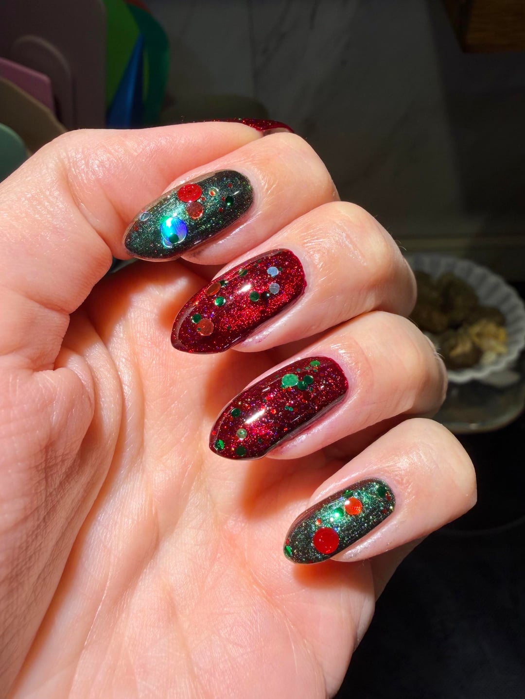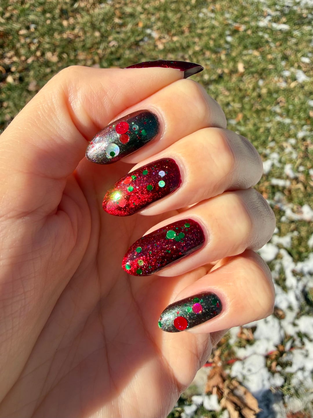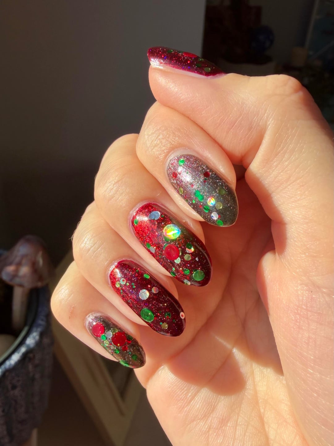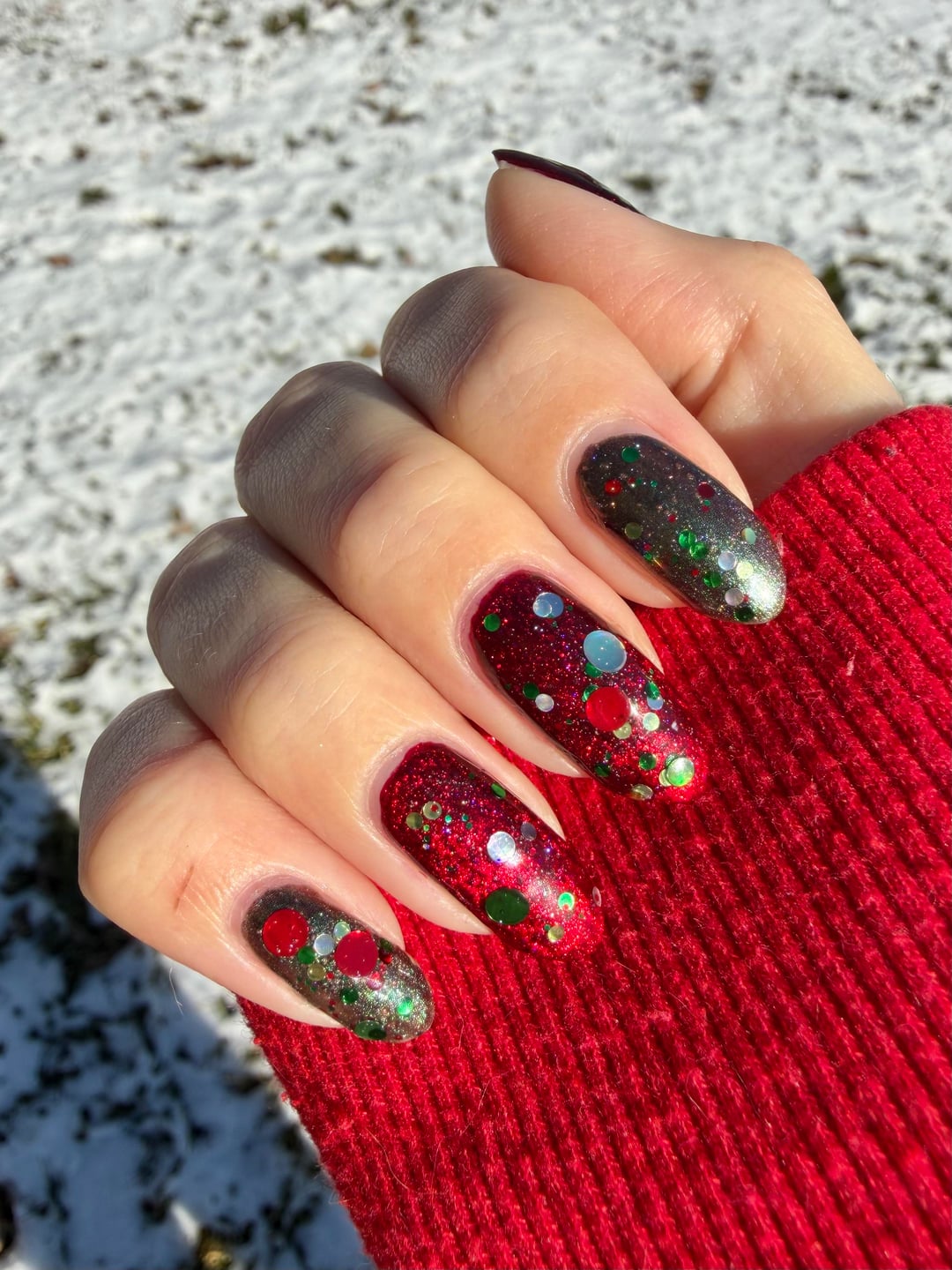 I love these polishes together! This just screams Christmas to me, and the sparkle is gorgeous!