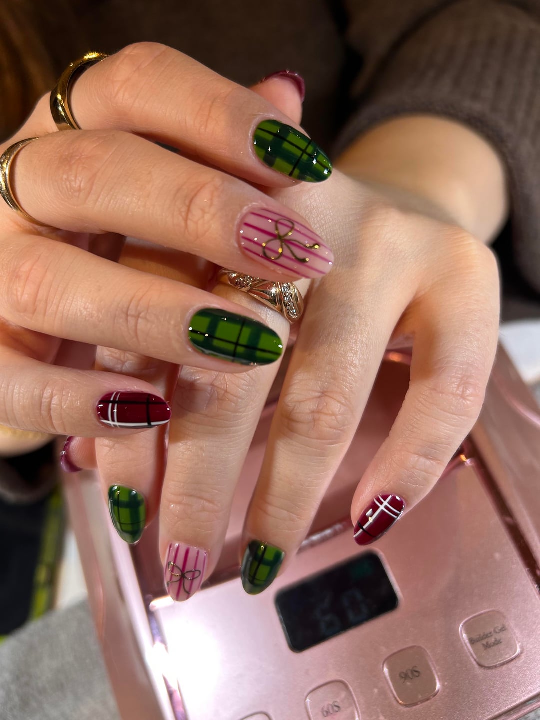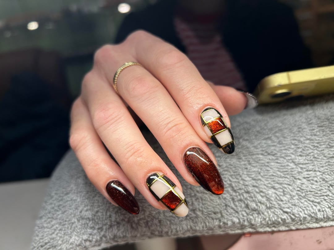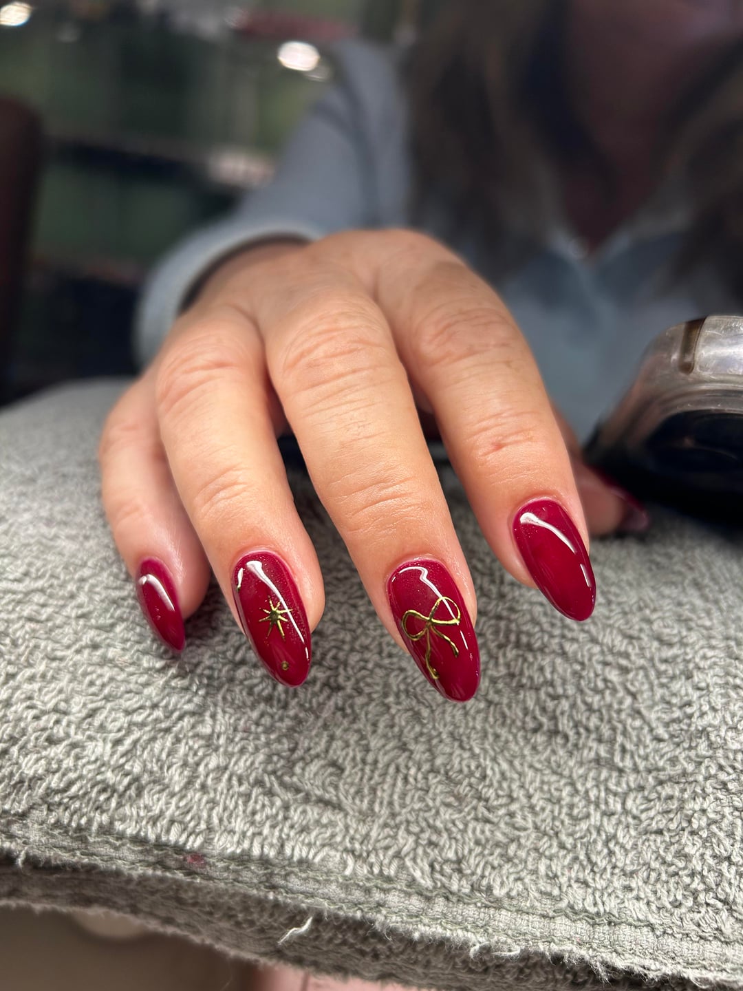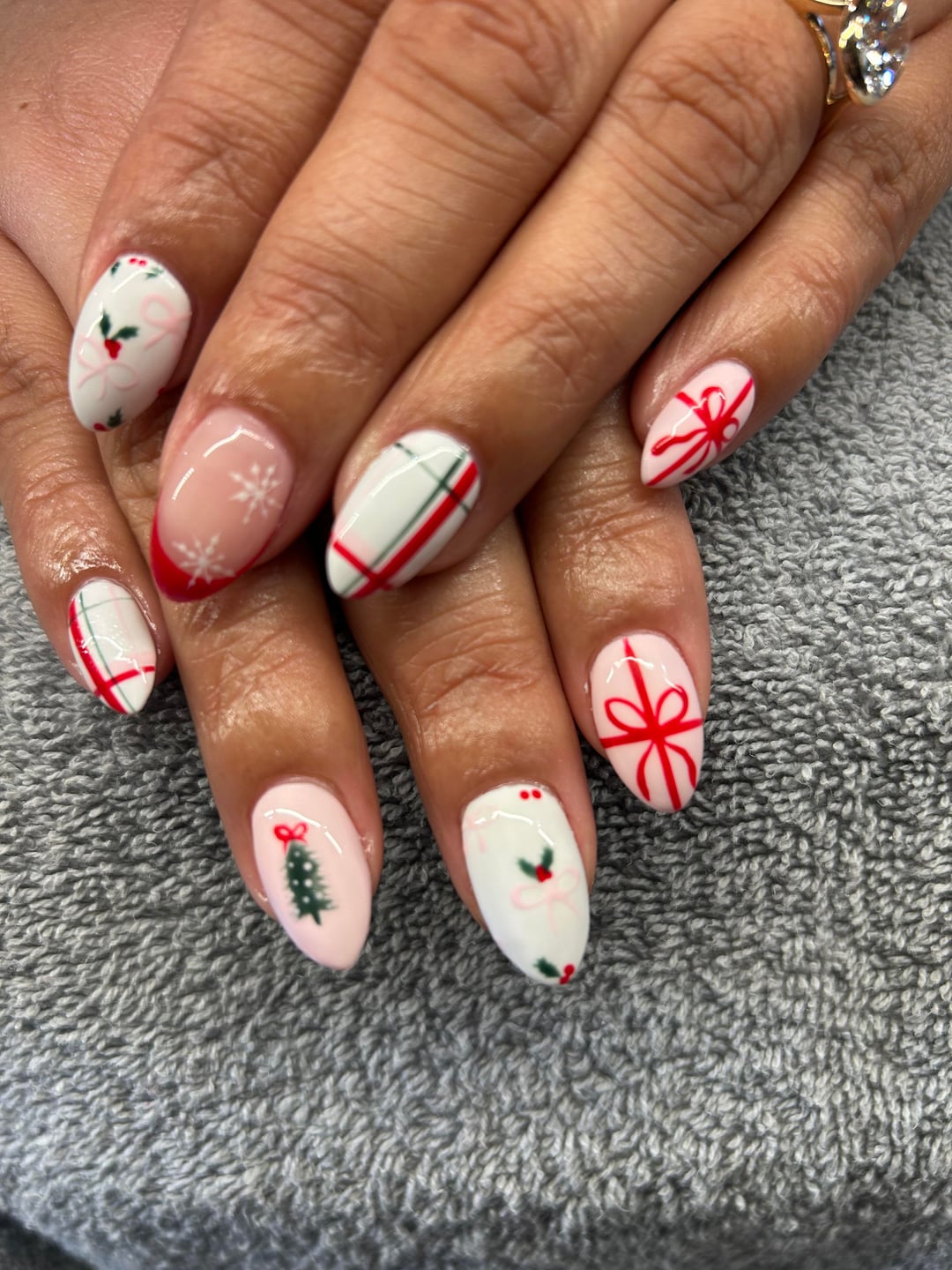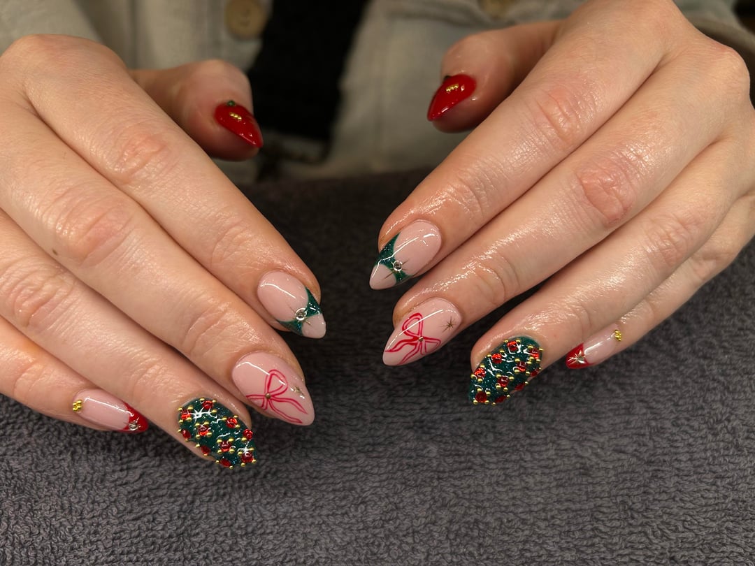 December 21, 2025I did my own Christmassy nails. Should I add some white over the red (either lace or snowflakes) or leave them as they are?