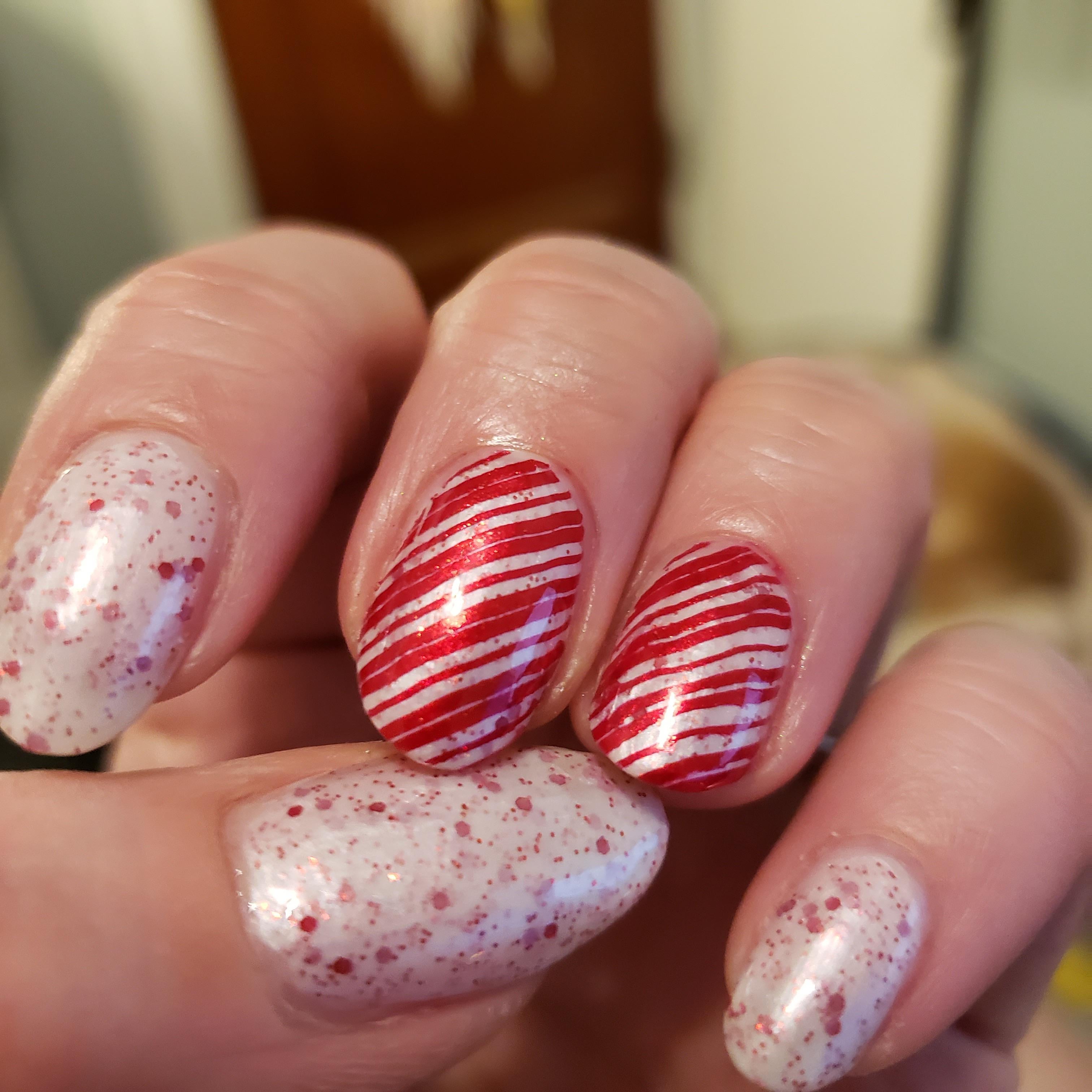 - homemade polish! – white shimmer with various red glitters