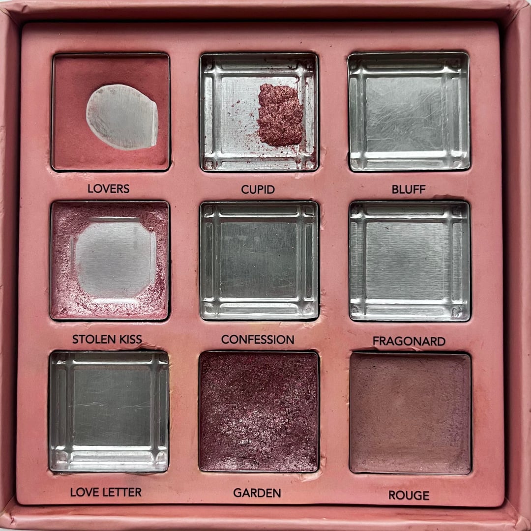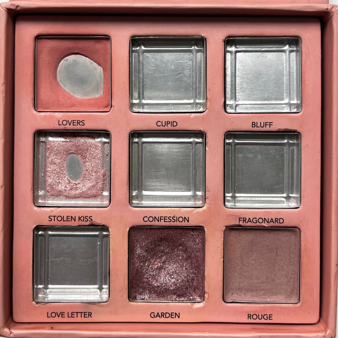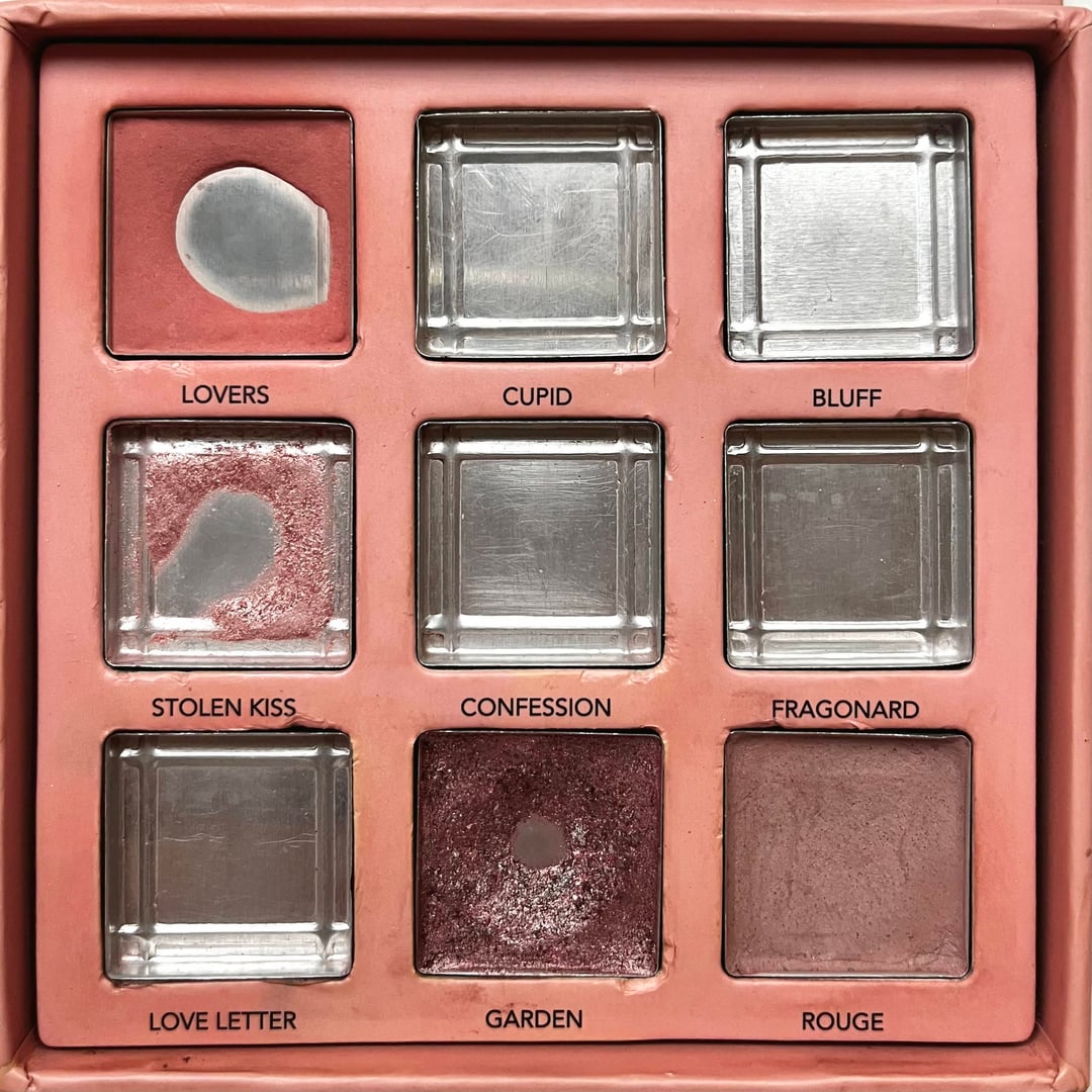 * I *doubled* this goal and used up SIX eyeshadows! Two-thirds of the palette! I used them up in the order of: Bluff, Confession, Love Letter, Fragonard, Cupid, Stolen Kiss. Couldn’t be happier with this.