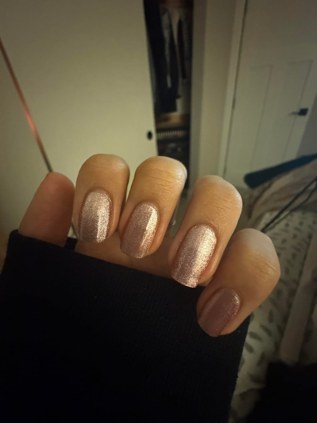 one amateur glamour shot with flash (I can’t resist), one in low light that is a more realistic representation without natural sunlight or flash. Day 3 of mani.