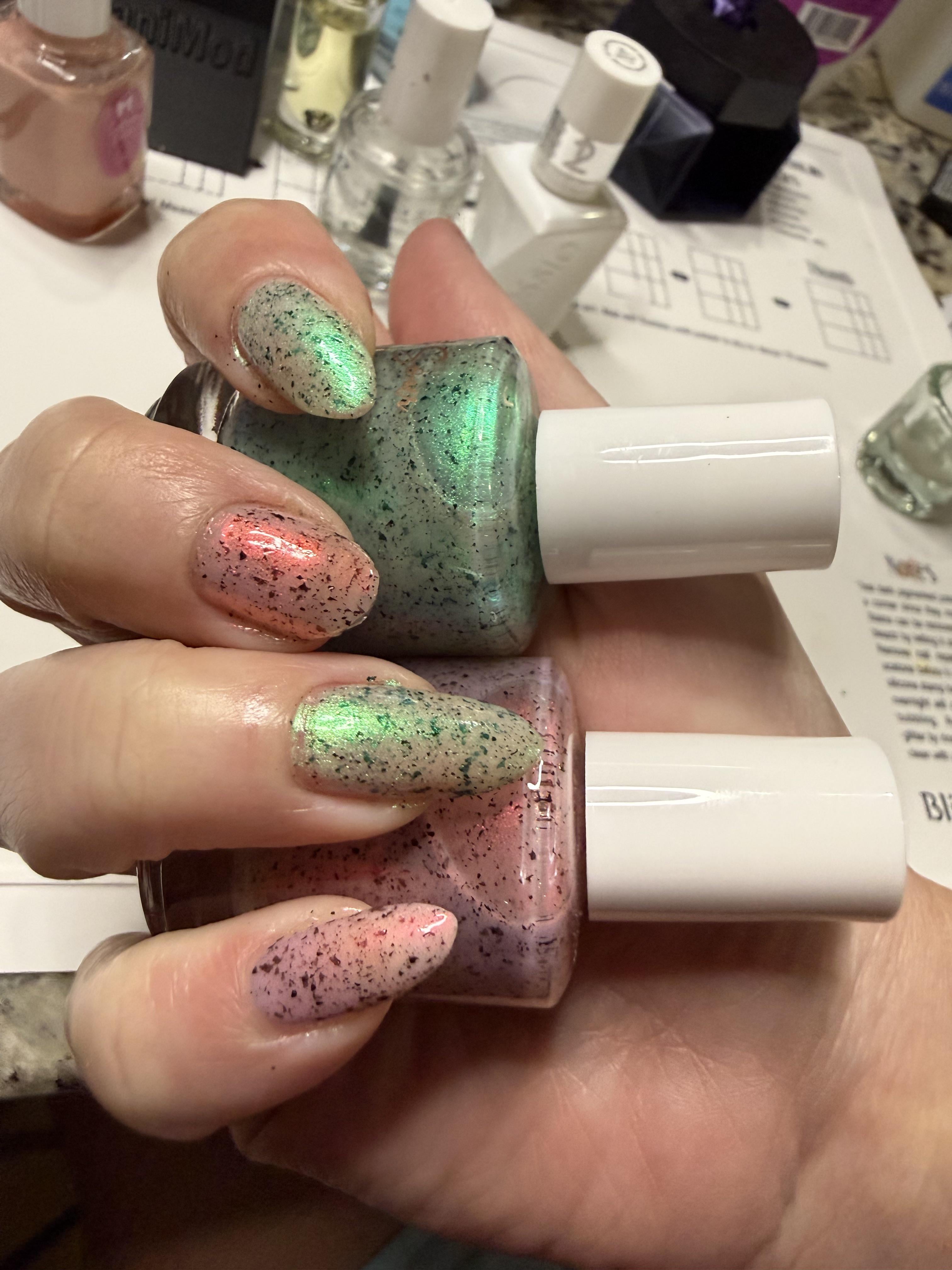 I’m not sure why I thought this would be darker or less sheer but in general these polishes are top notch. Super smooth, no issues with the flakes being uneven and ending up with less at the end of the brushstroke.