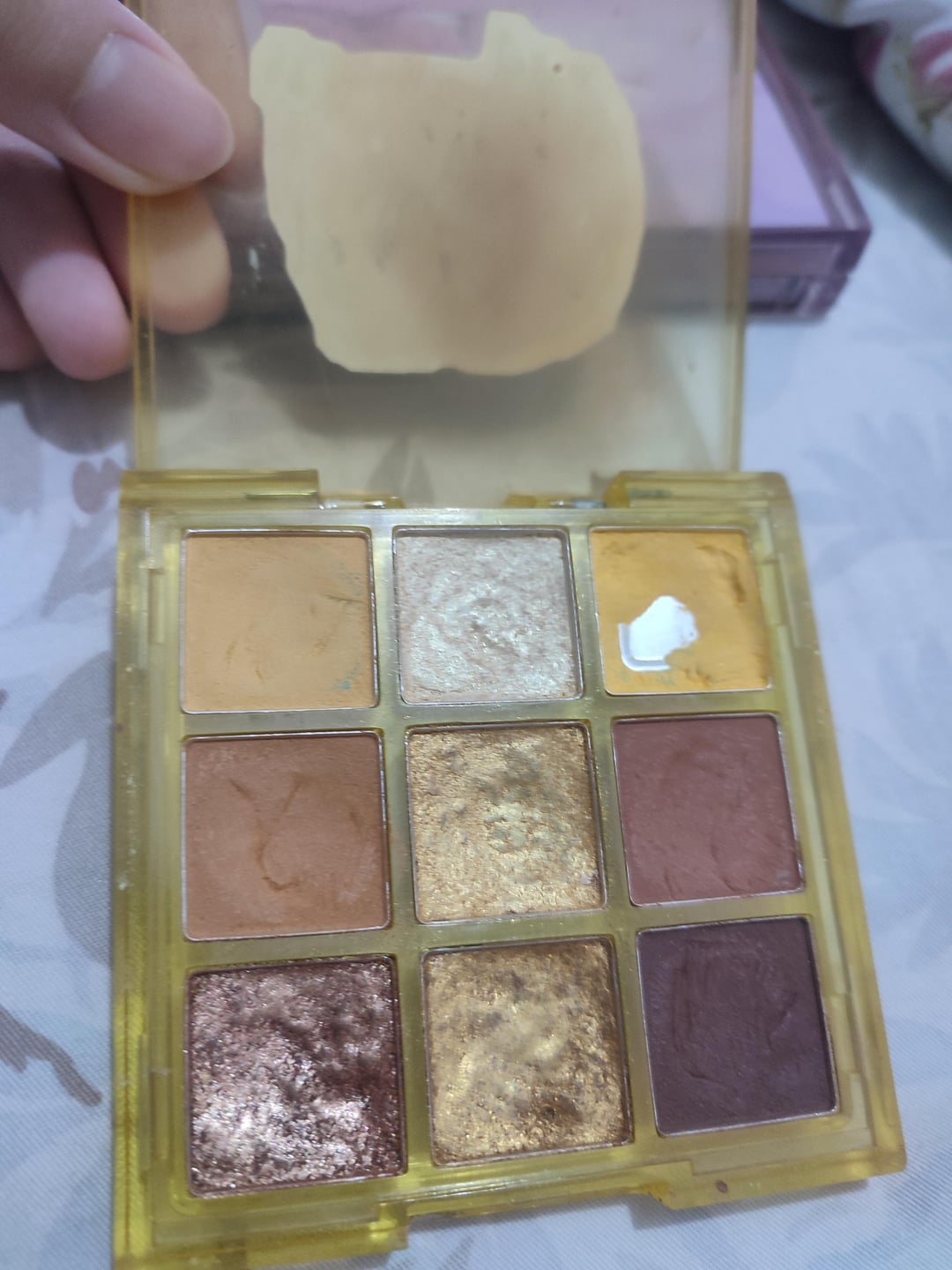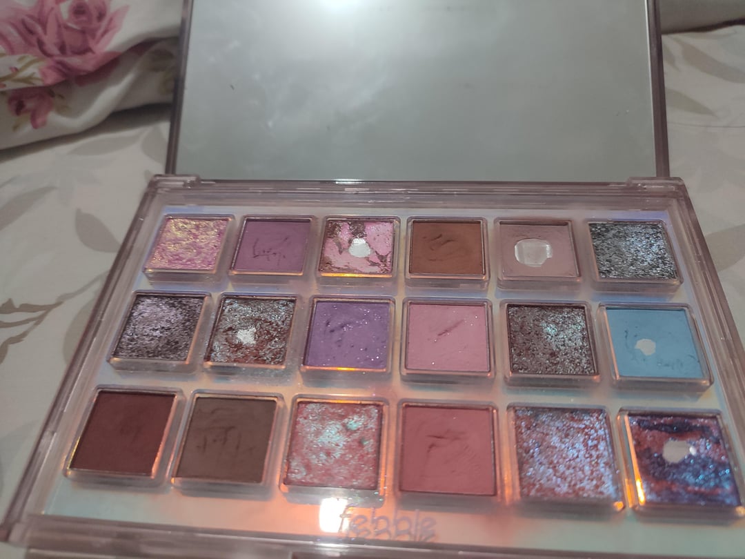 I feel like my pans weren't really well earned… those shades shown are pretty fragile/powdery/emollient, and recently i made a frankenblush with my powder based products and i accidentally drill-panned the colorrose shade 💀 (also all those weird scratch marks are from making that frankenblush!!). I also have a bad habit of swatching my makeup for no reason (for fun). As for the sunscreen and lip balm both were partially used by my sister and mom respectively (i think, for the latter)