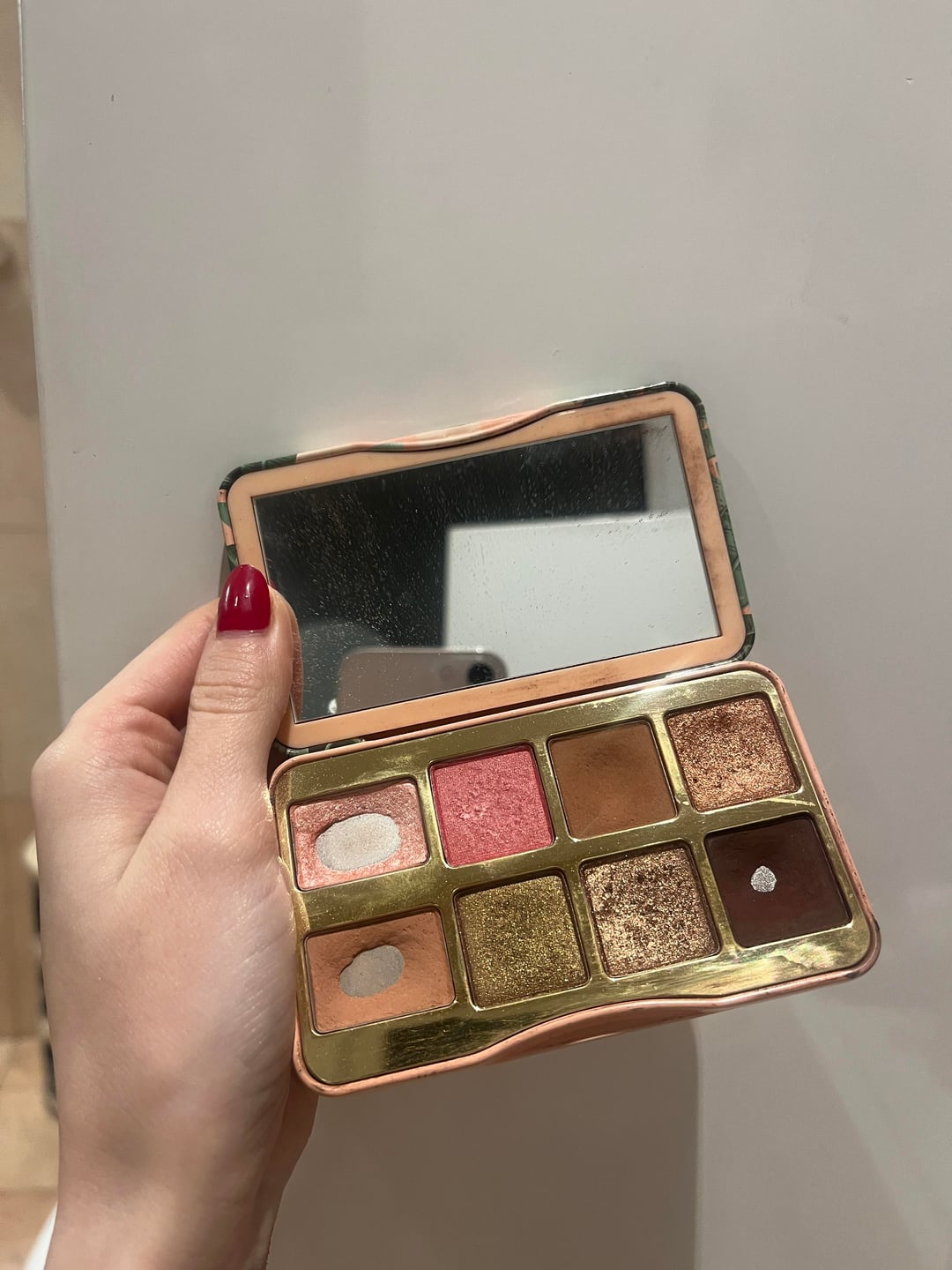 Too faced Shake your Palm Palms – my go to travel palette especially in the summer. I love using that dark brown as eyeliner by spraying my brush with setting spray. That green is stunning!