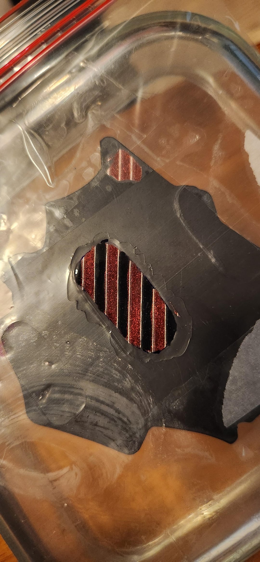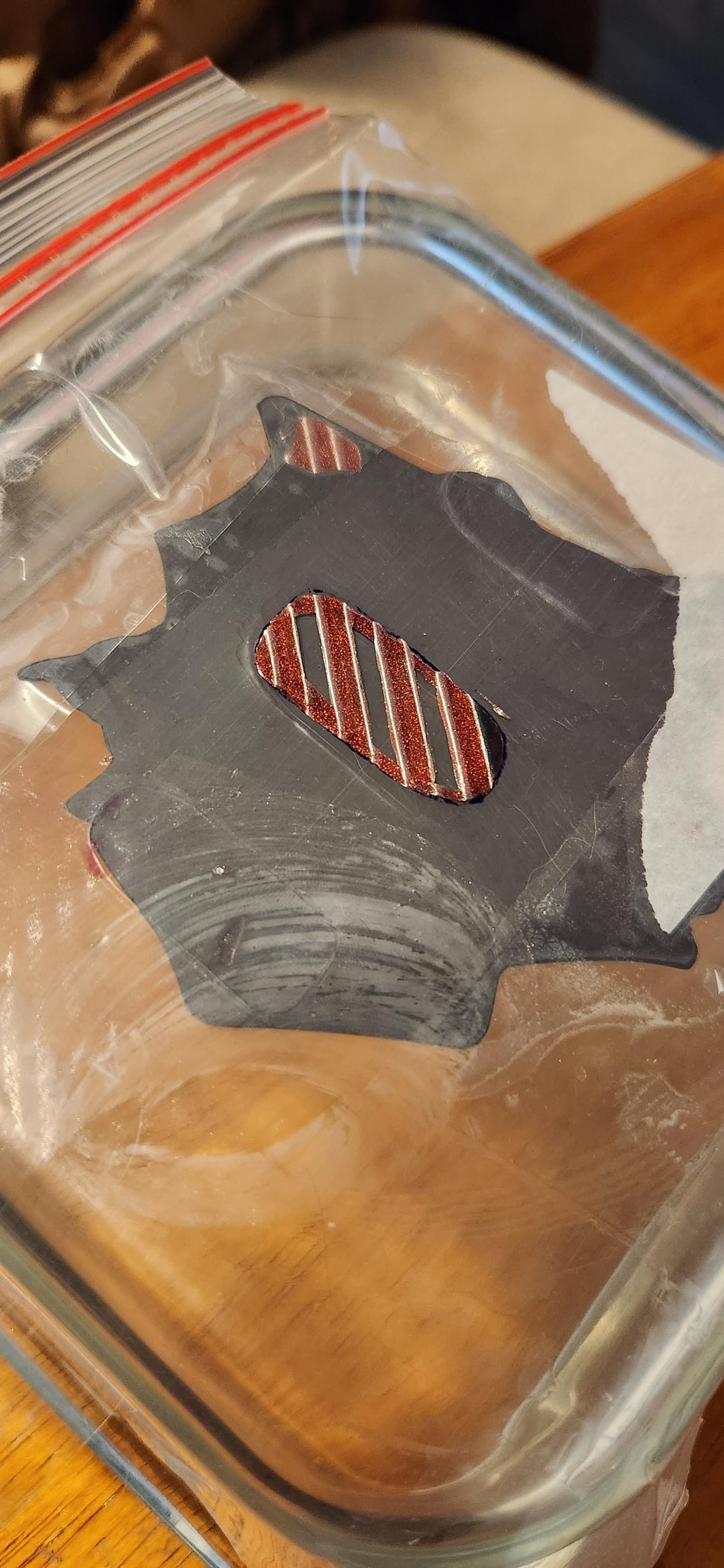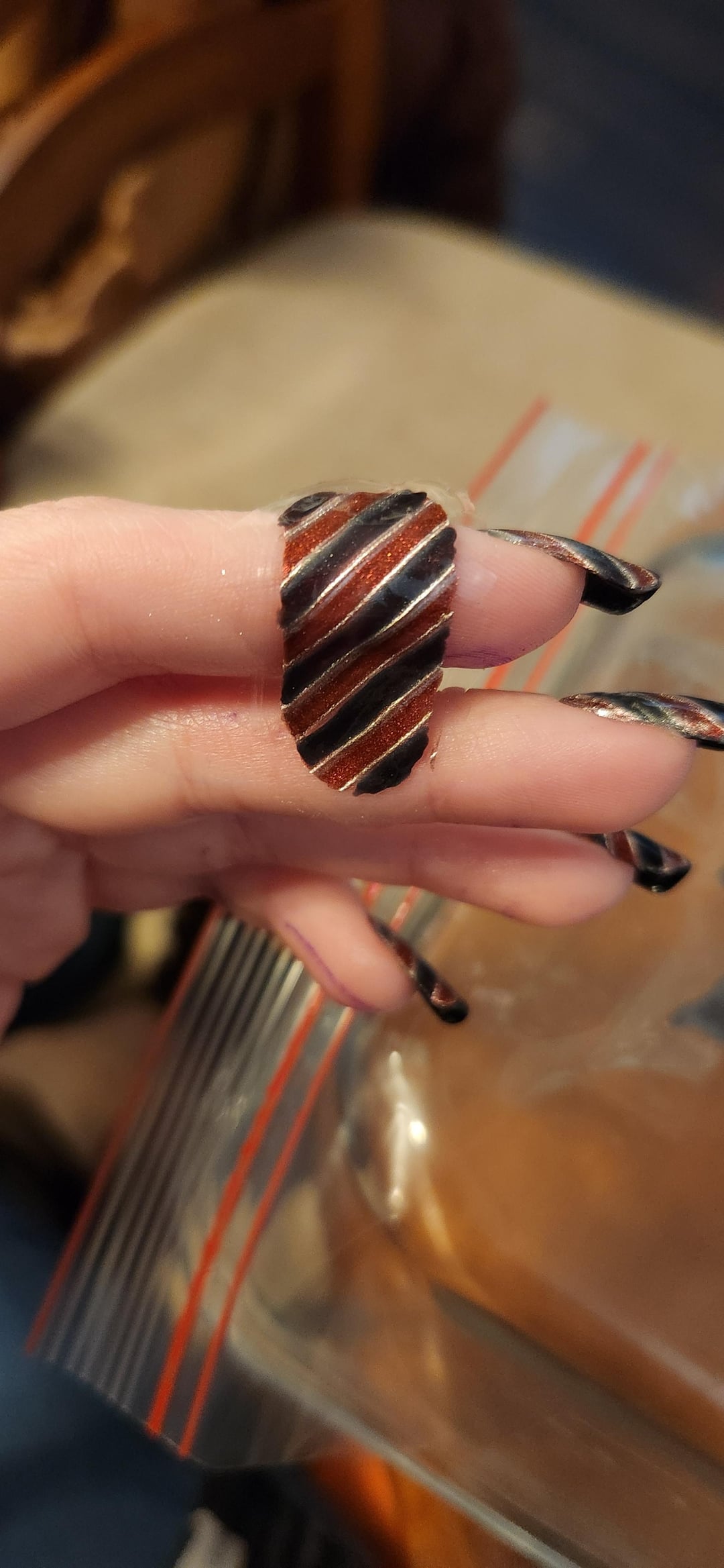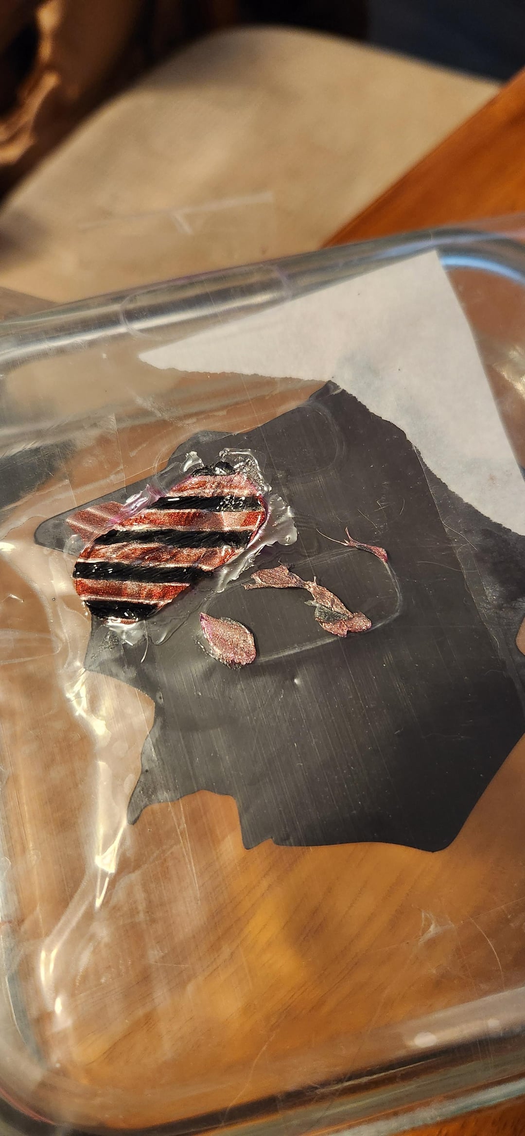 10.) Use your fingernail to lift and peel the decal off. Too soon and it will stick, or pucker. Both will mess up the magmetic effects. Ideally it will peel of smoothly, without resistance, and be lightly sticky. do not touch it to your nails accidentally, it will stick and you will be upset. It should also be limp and wiggly. Perfect amount of cure.