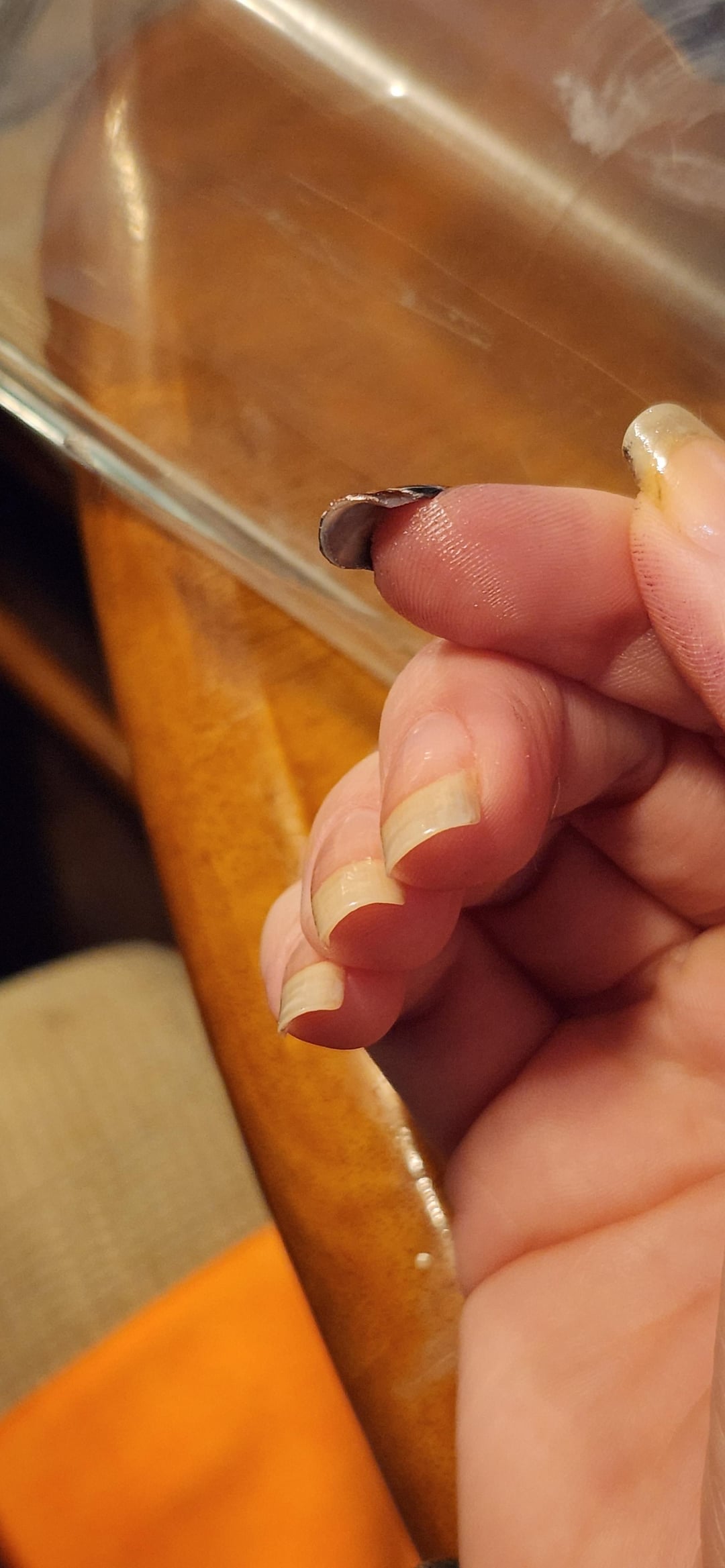 9.) Now you wait. For my polish and topcoat combo it took 20min. You will want to pull it early, dont do it! If you pull it too late and the polish cures a bit too much it will be a huge pain to apply and wrinkle more. You do not want it to be cured fully. Wait time will probably depend on your polishes and room temp. Do some practice if you want. This picture is of a decal pulled too soon.