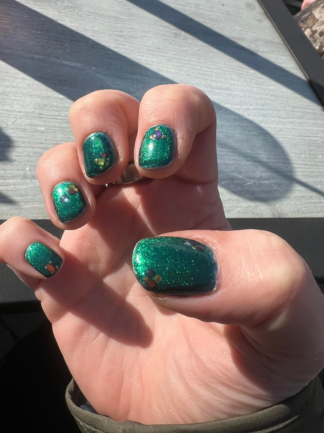 My first time using nail stickers! Obsessed with this Xmas tree inspired look. Mooncat full screen ahead, Mooncat drown my demons, velvet style magnet, deco beauty stickers, glitter grabber topcoat. by harmreductionista