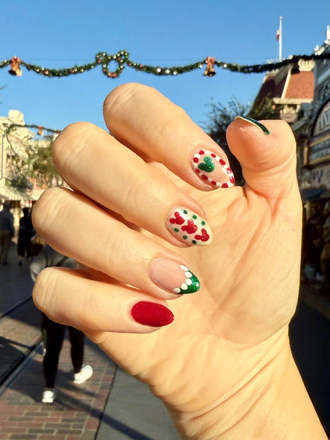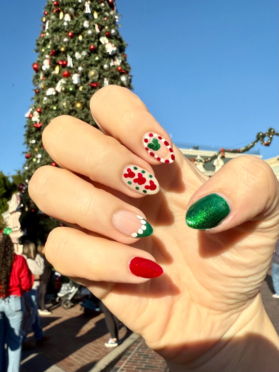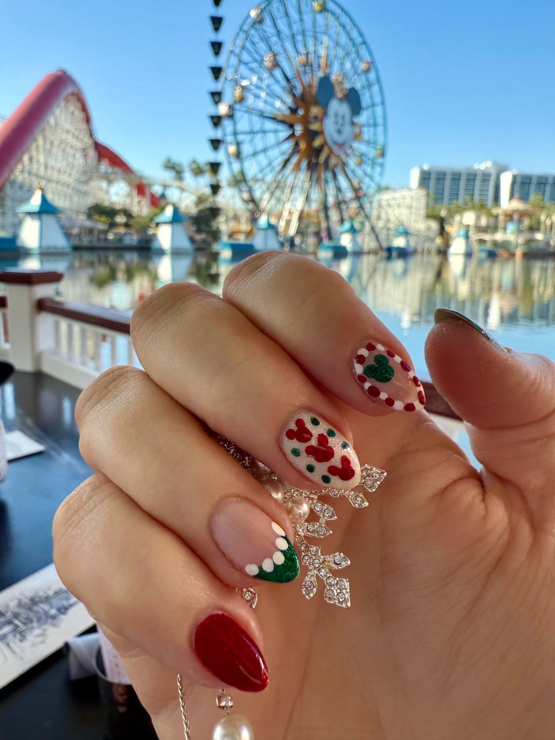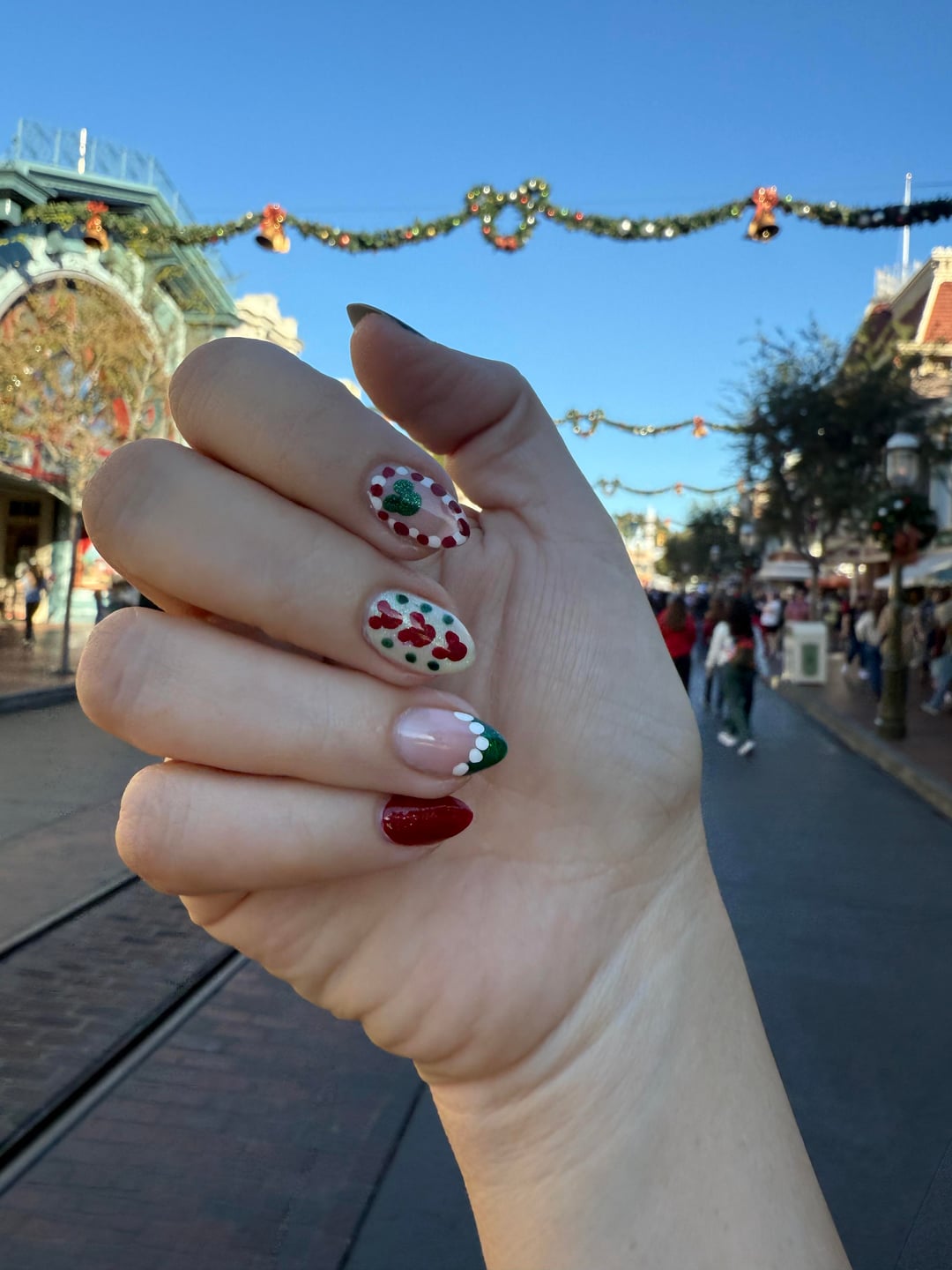 These nails were for a holiday trip to Disneyland that I went on two weeks ago. I tried my hand at copying some adorable inspo that I included in the last slide!