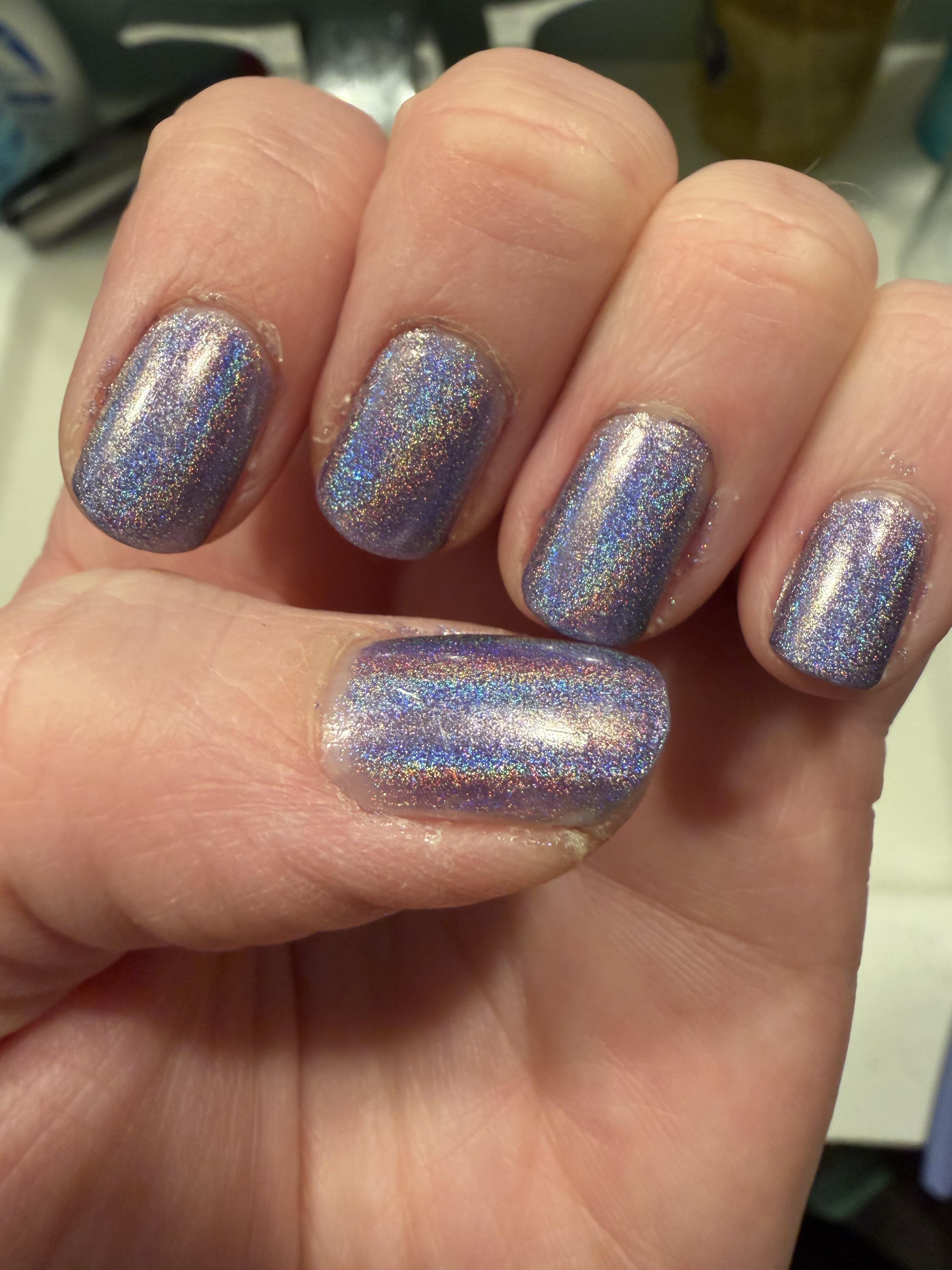 Holo Taco Lavender Syrup, sandwiched between Seche Clear and Seche Vive. I haven’t used this polish that frequently, so I forgot the side effect of having to stop and stare at it every time the light hits it right. by bananazest_wow