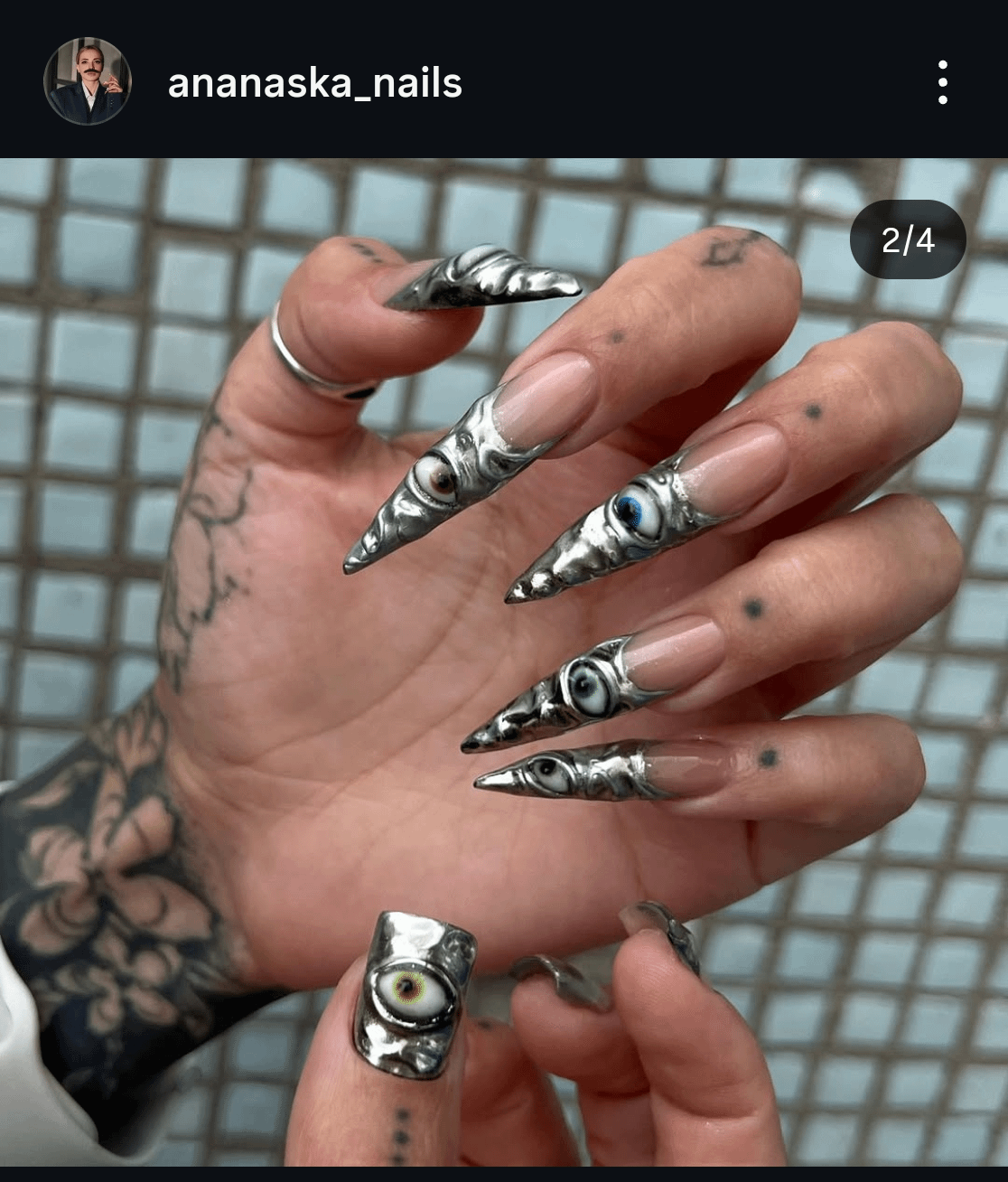 Credit to this person, does anyone know how to make the chrome part I know how to make the eye but not the chrome, please I need help my client ask for it this Sunday 🤧