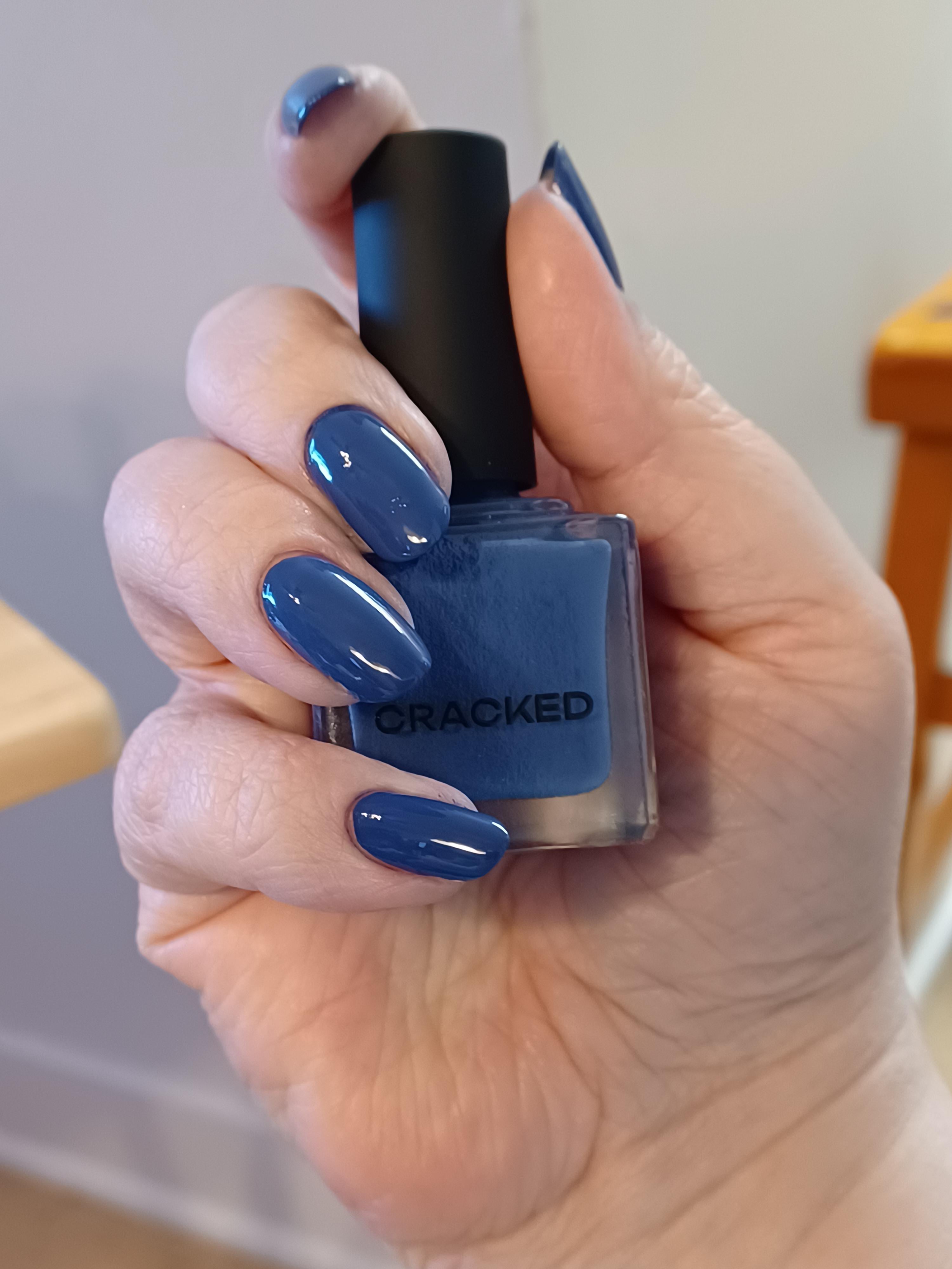Bluebell bonnet by cracked. 2 coats. Could get away with 1! No top coat.