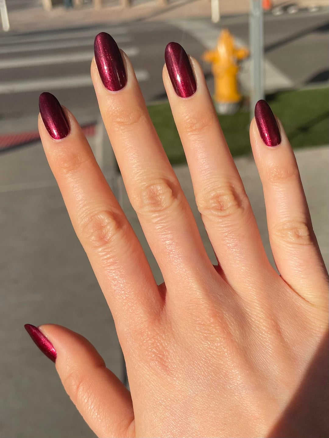 Wearing my first Cracked Polish from my small BF sale purchase. I’ve been on the hunt for a rich, dark red shimmer that doesn’t lean too warm or orange in certain angles. After looking at different polishes, I ended up getting Vampire Juice Box. This polish is stunning in person and feels so luxe during the holidays although the polish was themed for Halloween. I can confidently say the shimmer does not shift into orange which is what I personally wanted to avoid with this type of polish. Cracked never disappoints and has become of my favorite brands of polish this year.