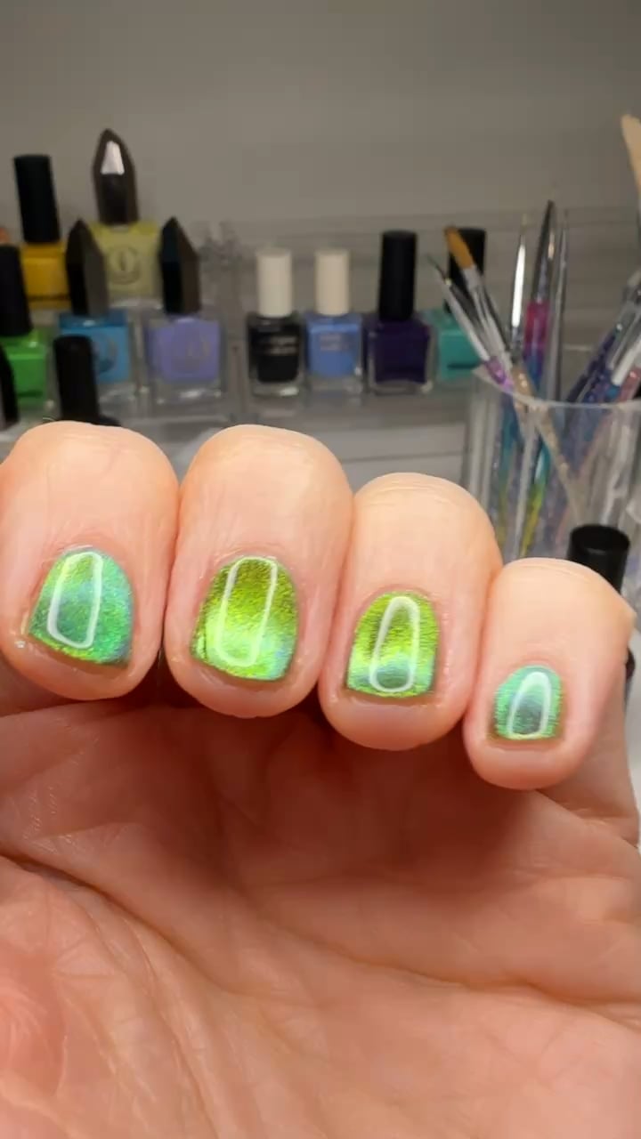 Im so relieved for Xmas to be over and Im really looking forward to spring as someone who gets seasonal depression. I had to try out BKLs bloom again. Shown here in two coats, magnetized glass bead style with my Etsy 5d print shop spinner (1 minute on each coat, 30 seconds on top coat), one coat of BKL QDTC