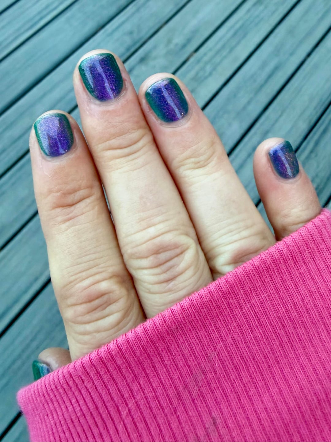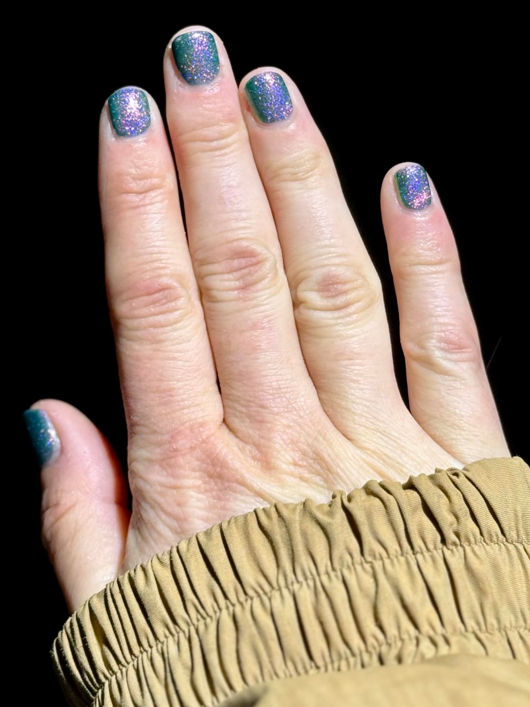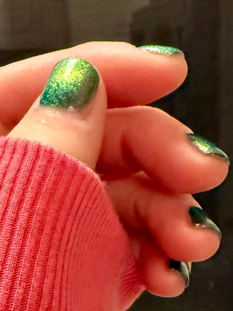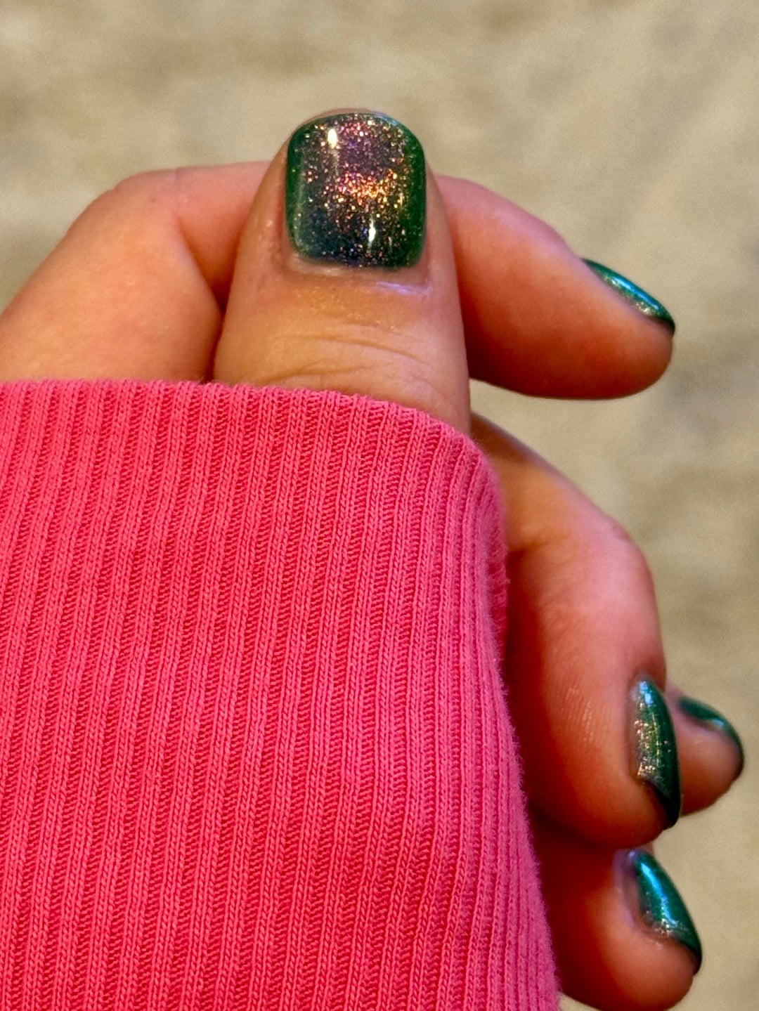 It was a PPU polish and I remember being super excited for this one back when I ordered it. But then, it’s taken me a bit to actually get around to wearing it. Yesterday I needed a palette cleanse from the Holiday nails, so I pulled this out. I’m floored at how amazing it is (although the green base admittedly might be a tad too dark for me?). I’m a sucker for smooth, glassy magnetics with shift. This might go down as my favorite magnetic ever!