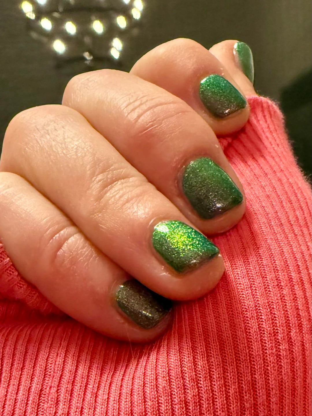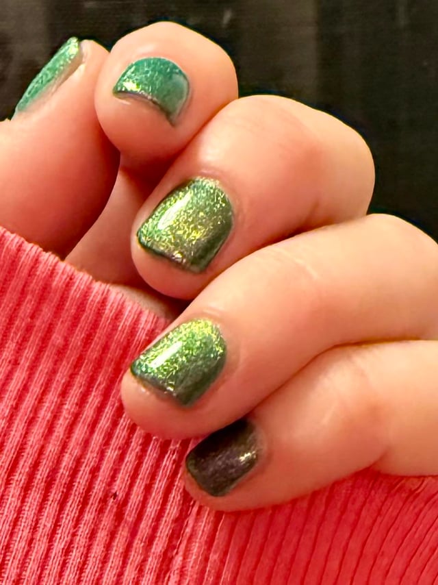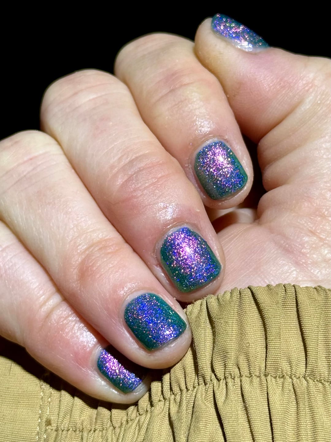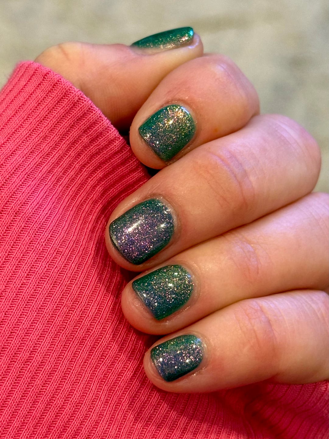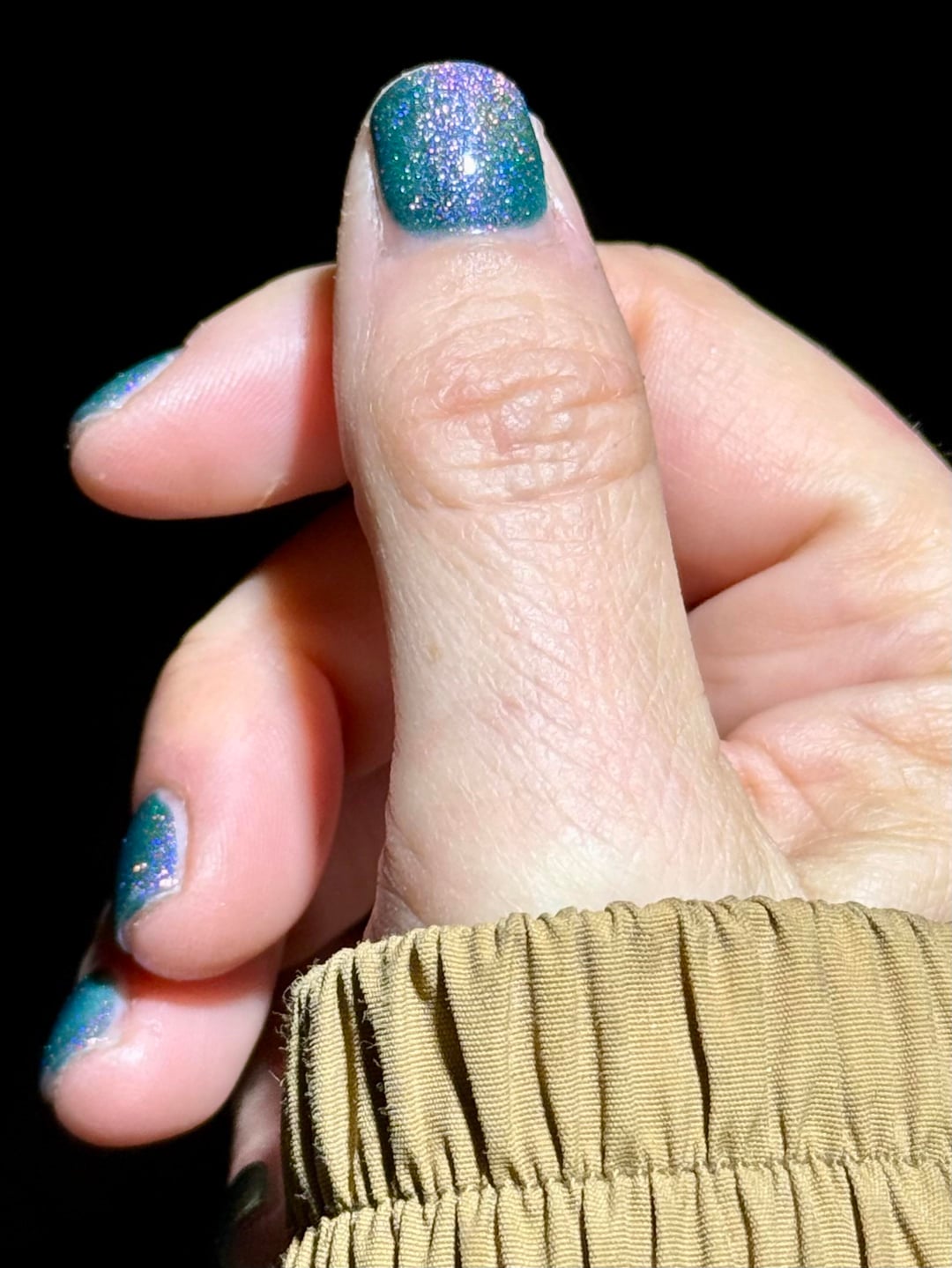 It was a PPU polish and I remember being super excited for this one back when I ordered it. But then, it’s taken me a bit to actually get around to wearing it. Yesterday I needed a palette cleanse from the Holiday nails, so I pulled this out. I’m floored at how amazing it is (although the green base admittedly might be a tad too dark for me?). I’m a sucker for smooth, glassy magnetics with shift. This might go down as my favorite magnetic ever!