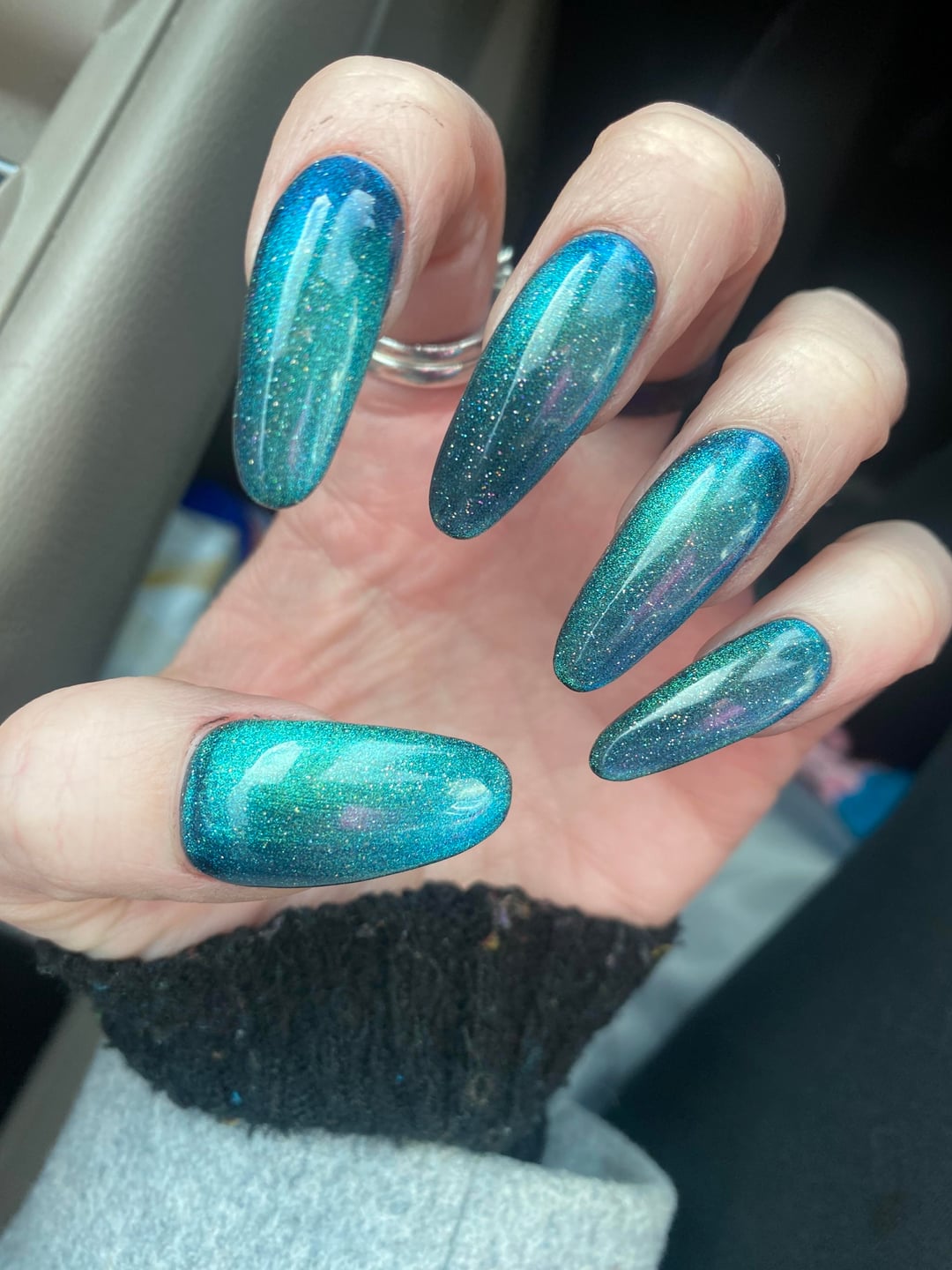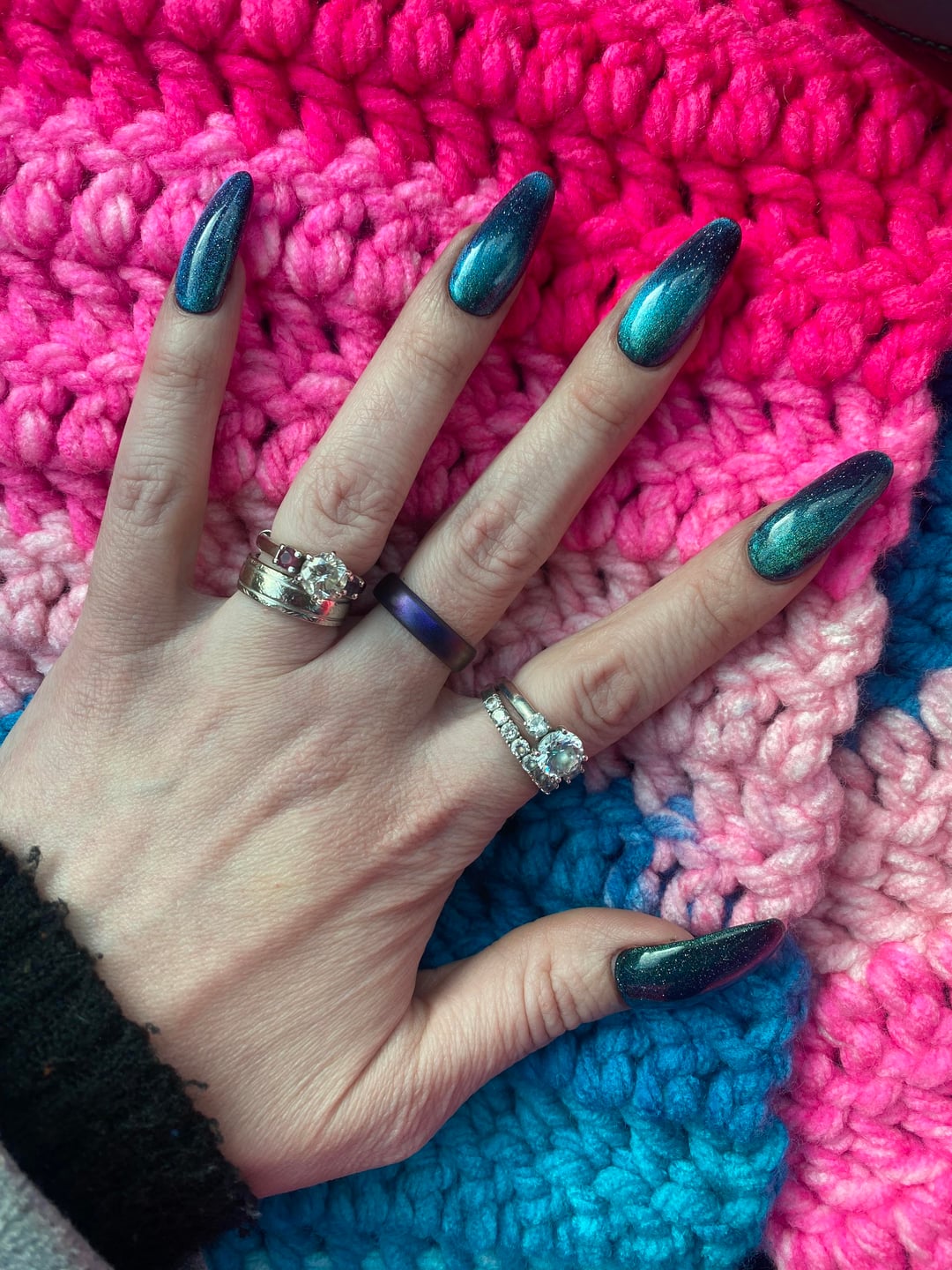 December 27, 2025Finally hopped on the plaid nail trend but added some cat-eye and sparkles bc I’m a magpie.