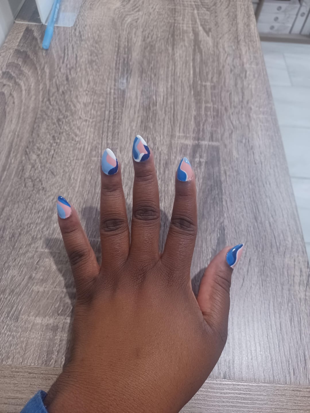 Did something different than the usual coquette-ish nails I usually like. Design reminds me of the ocean, took hours to make up my mind when I was painting them 😓 matching hands was hell