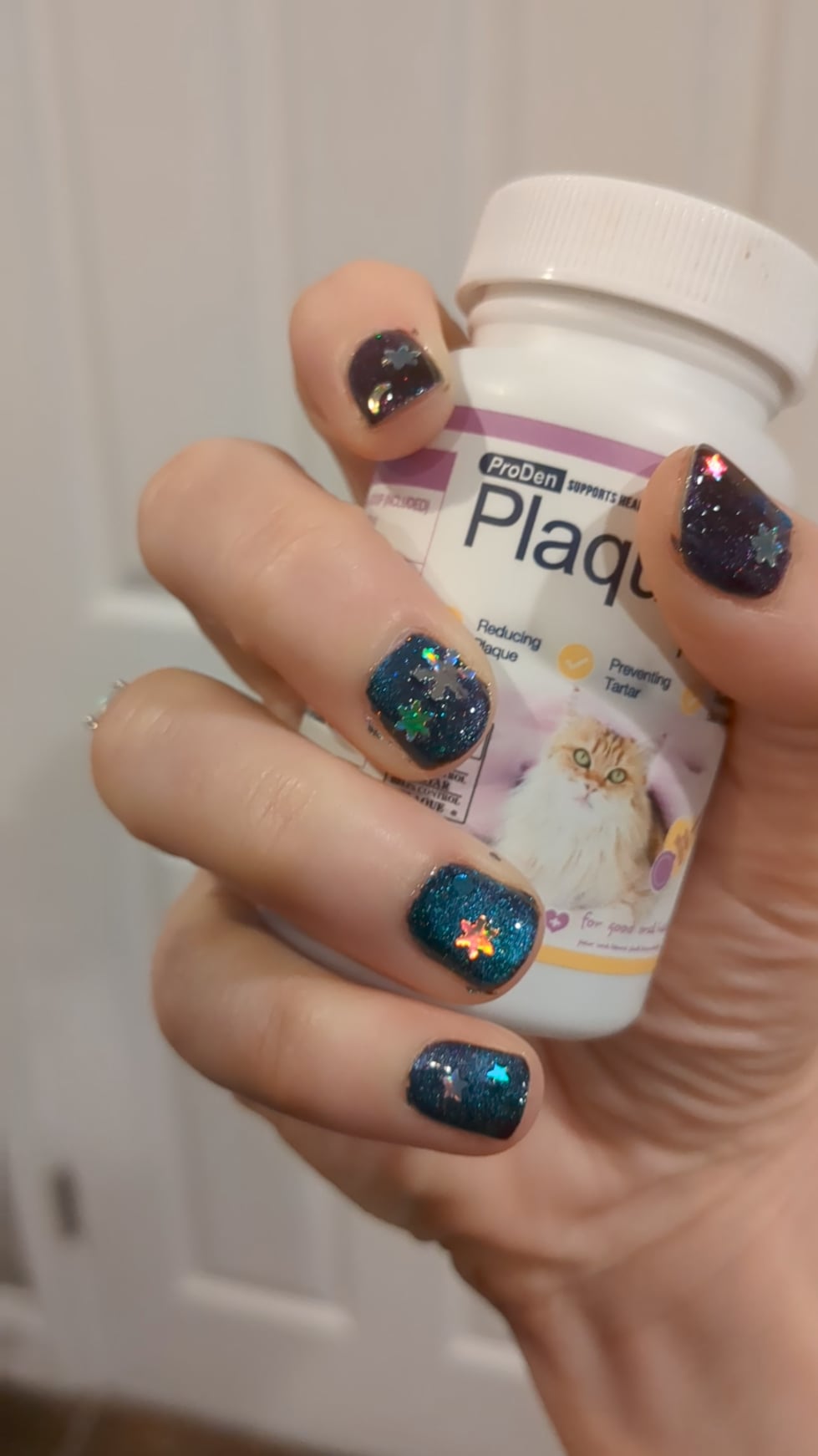 Forgot to add the bonus product used: my cat’s plaque treatment, because I love an unhinged pose 🤣