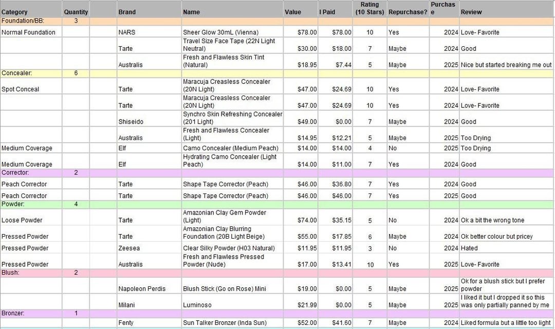 My yearly makeup empties with thoughts in adjoining photos 🙂 all of these will be recycled enjoy! ☺️