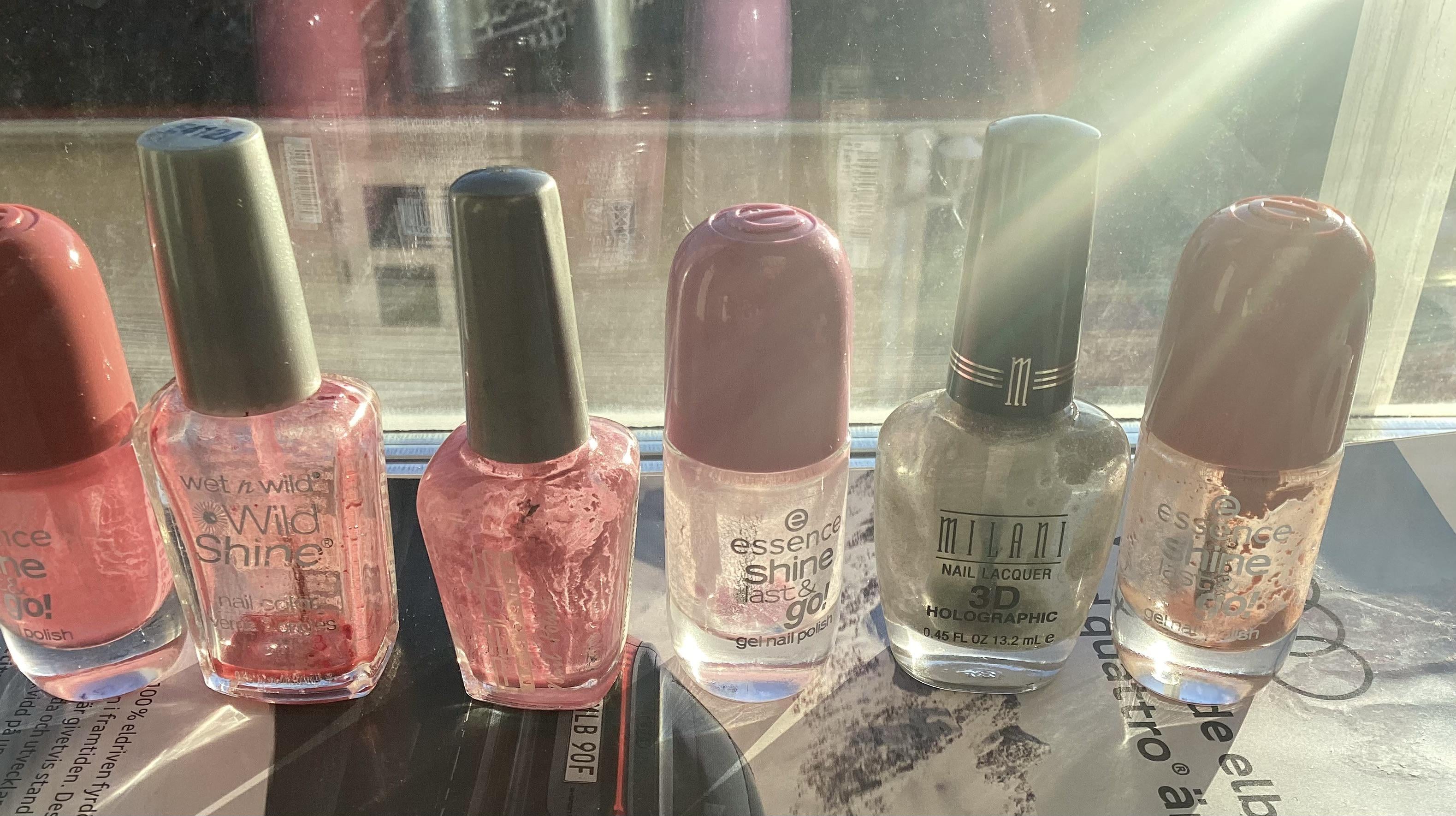 When the product level in a bottle gets too low to comfortably reach with the brush, I will pour the remainder into a half full bottle, already in my stash.