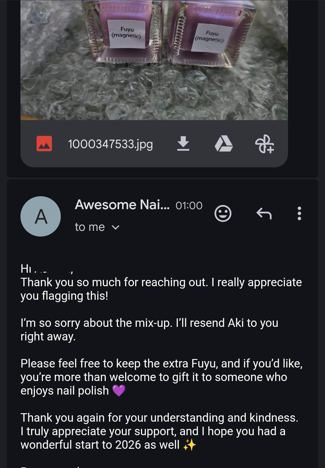 While there was a lag from my end in realising this, Violet (owner) of ANLAC so kindly replied within 7 minutes with a dispatch notification and a kind message. 💌